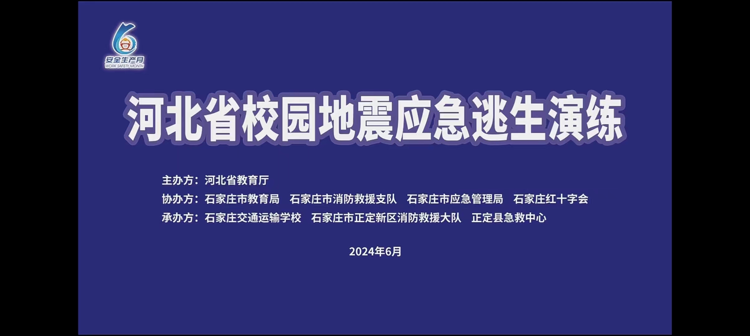 为进一步加强河北省校园防震减灾安全教育和防范应对工作,提升石家庄市全体师生的应急自救能力和安全综合素质,提高学校应对地震灾害的能力,普及防震减灾应急技能,有效检验教育系统地震应急预案的科学性和适应性, 6月17日上午,由河北省教育厅主办,石家庄市教育局、石家庄市消防救援支队、石家庄市应急管理局、石家庄市红十字会协办,石家庄交通运输学校、石家庄市正定新区消防救援大队、正定县急救中心承办的河北省校园地震应急逃生演练在石家庄交通运输学校举行。