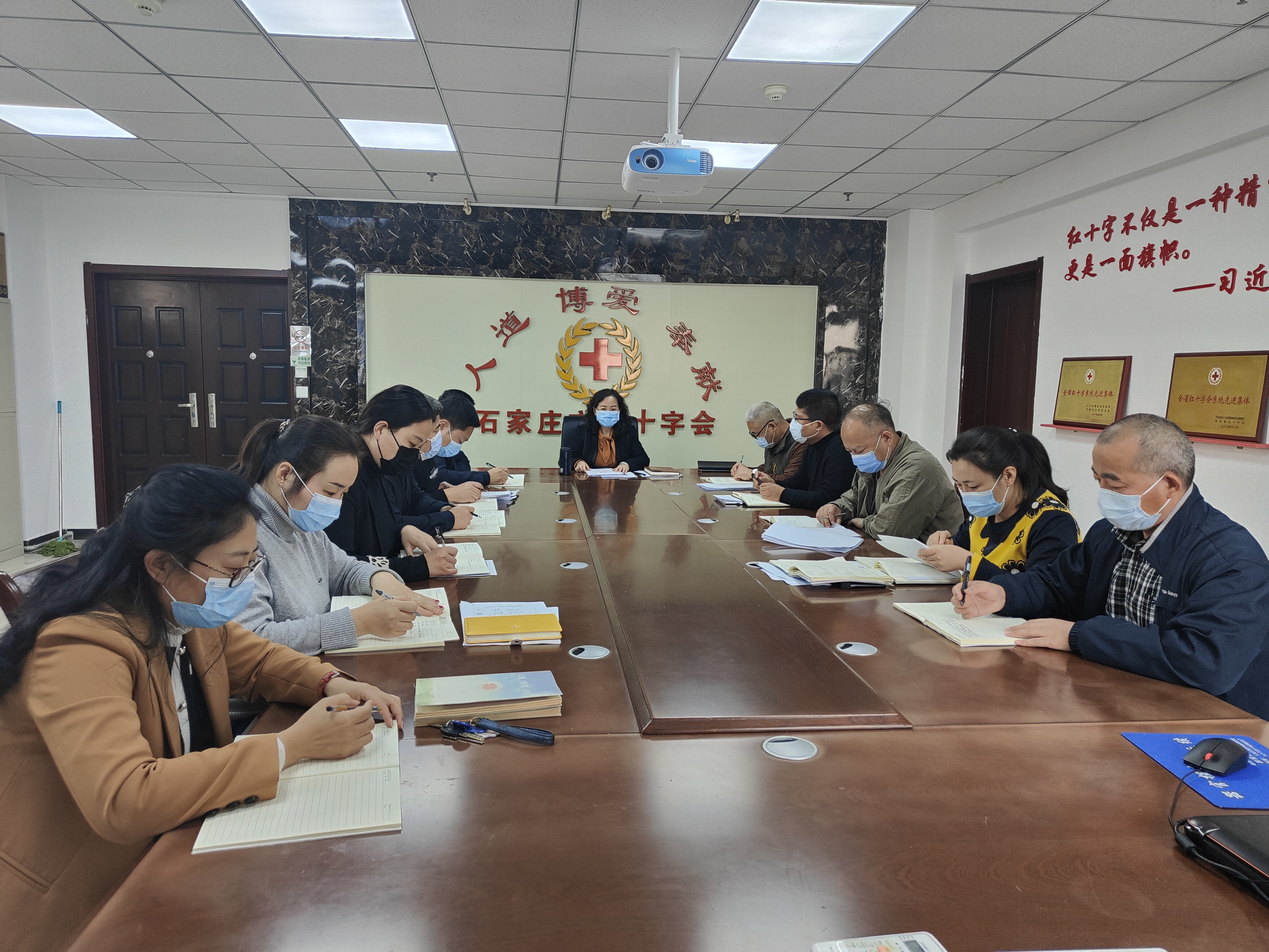 11月16日,中共石家庄市红十字会党组理论学习中心组带会机关全体党员集中学习党的十九届六中全会精神。市红十字会党组书记、常务副会长李遐主持会议并就进一步学习贯彻落实会议精神,推动红十字会工作高质量发展进行了安排部署。