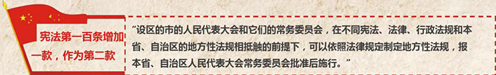 宪法修正案在宪法第三章《国家机构》第一百条增加一款,作为第二款:“设区的市的人民代表大会和它们的常务委员会,在不同宪法、法律、行政法规和本省、自治区的地方性法规相抵触的前提下,可以依照法律规定制定地方性法规,报本省、自治区人民代表大会常务委员会批准后施行。”增加这一规定,有利于设区的市在宪法法律的范围内,制定体现本行政区域实际的地方性法规,更为有效地加强社会治理、促进经济社会发展,也有利于规范设区的市制定地方性法规的行为。