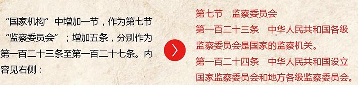 为了贯彻和体现深化国家监察体制改革的精神,为成立监察委员会提供宪法依据,宪法修正案在宪法第三章《国家机构》第六节后增加一节,作为第七节“监察委员会”,就国家监察委员会和地方各级监察委员会的性质、地位、名称、人员组成、任期任届、领导体制、工作机制等作出规定。