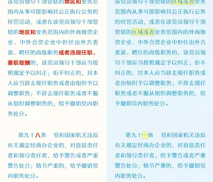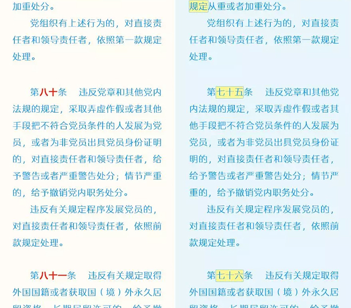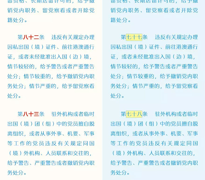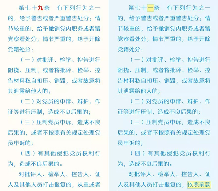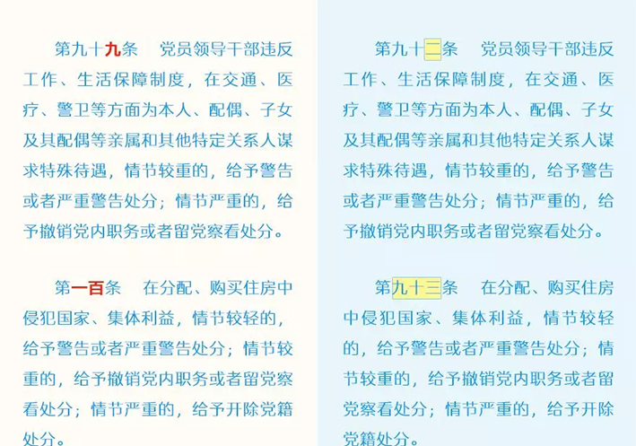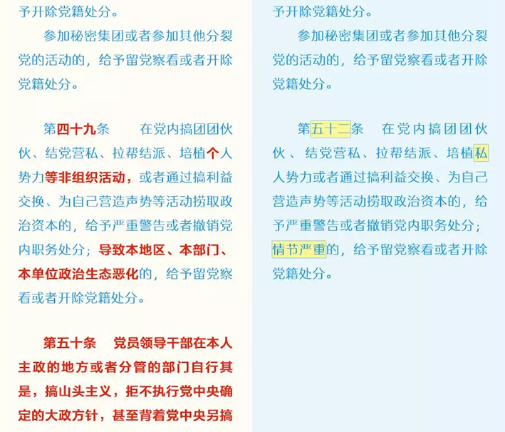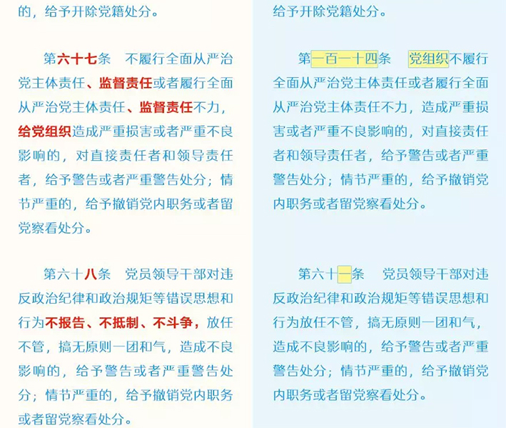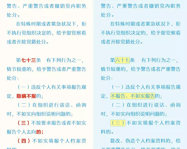 《中国共产党纪律处分条例》修订前后最全对照表(二)