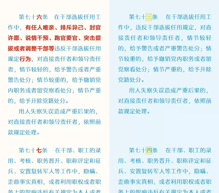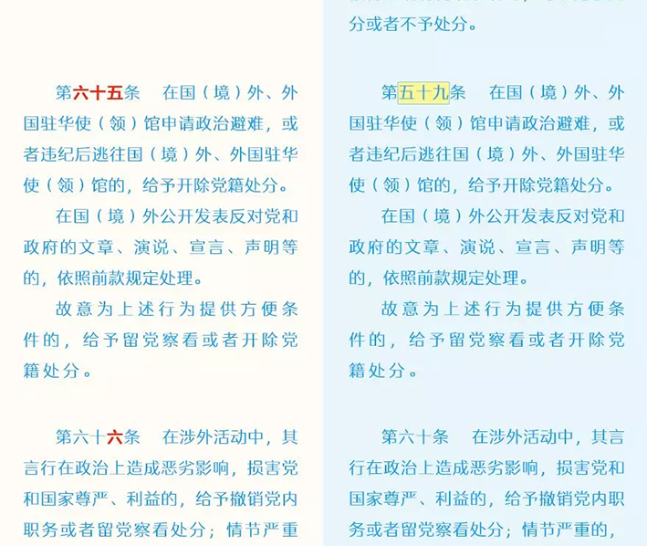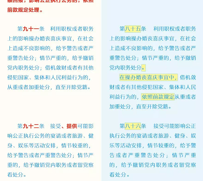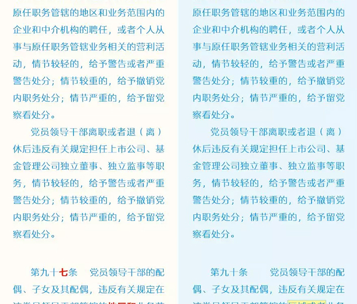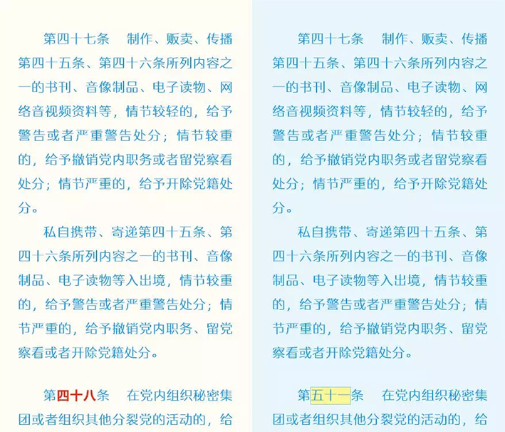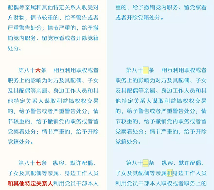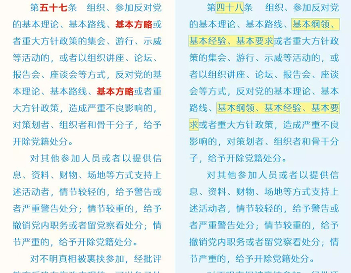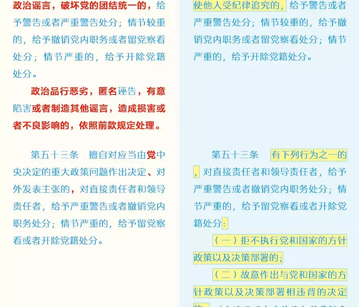 《中国共产党纪律处分条例》修订前后最全对照表(二)