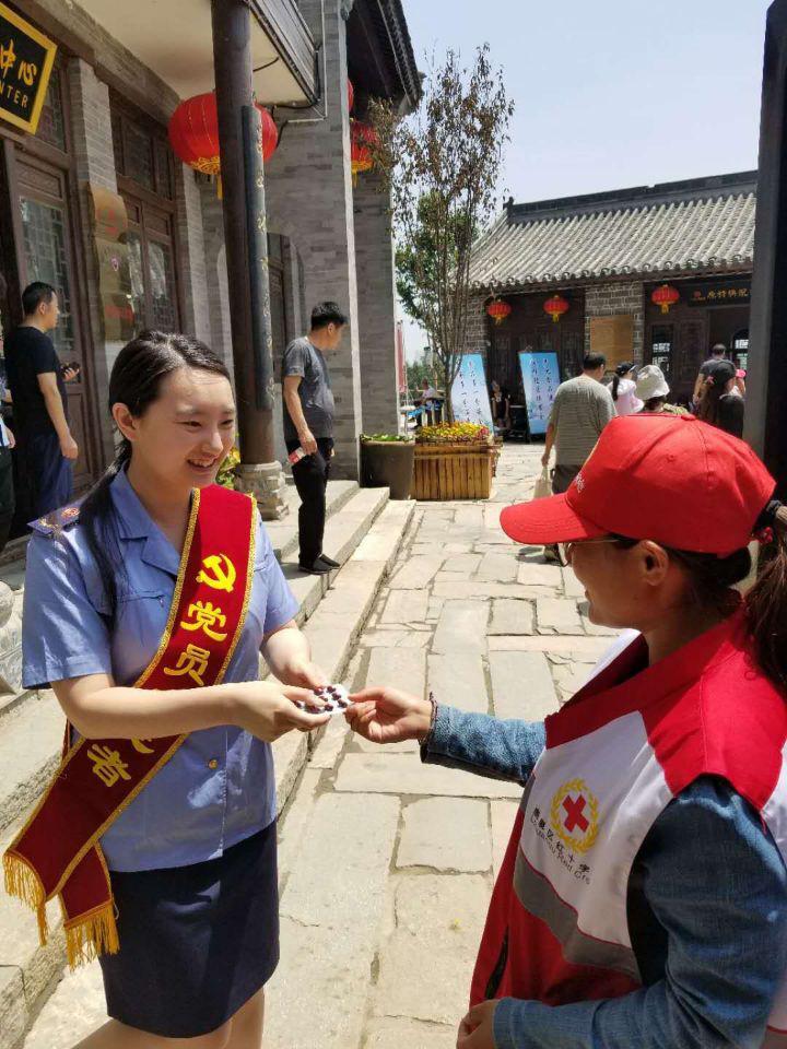 鹿泉区红十字会对12个观摩景点及9所接待单位安排了150名救护员和志愿者进驻。为每个观摩景点和接待单位都配备了救护员和常用急救药品。每一名救护员身着红马甲,佩戴小红帽,面带微笑,热情服务。红十字救护员迎着酷暑,不断的给过往游客传授红十字急救常识,并现场演练心肺复苏的操作,让游客在游览的同时,还学到了急救知识。在西部长青主会场,演员演出时出现意外情况,眼部受伤;在抱犊寨景区,演出人员腿部被划伤;在德明古镇,游客手指割伤;在杰明云顶野奢营地,小游客摔倒后擦伤;我们的救护员在第一时间,为每一位受伤的游客及时、有效地进行消毒处理并做好包扎,为专业救护人员抢救伤病员赢得宝贵的时间。现场共紧急救护处理受伤游客100多人次。同时,对于有需要帮助的游客为他们提供防暑药品,让游客和嘉宾们感觉到了浓浓的人道关怀。树立了红十字志愿者的良好形象。受到了与会嘉宾和领导们的一致好评。