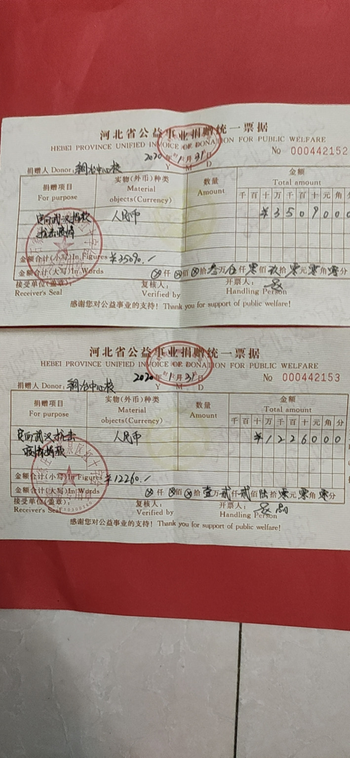 铜冶中心校全体教职员工向武汉疫区发起爱心捐赠,先后2次通过鹿泉区红十字会定向捐款共计47350元。