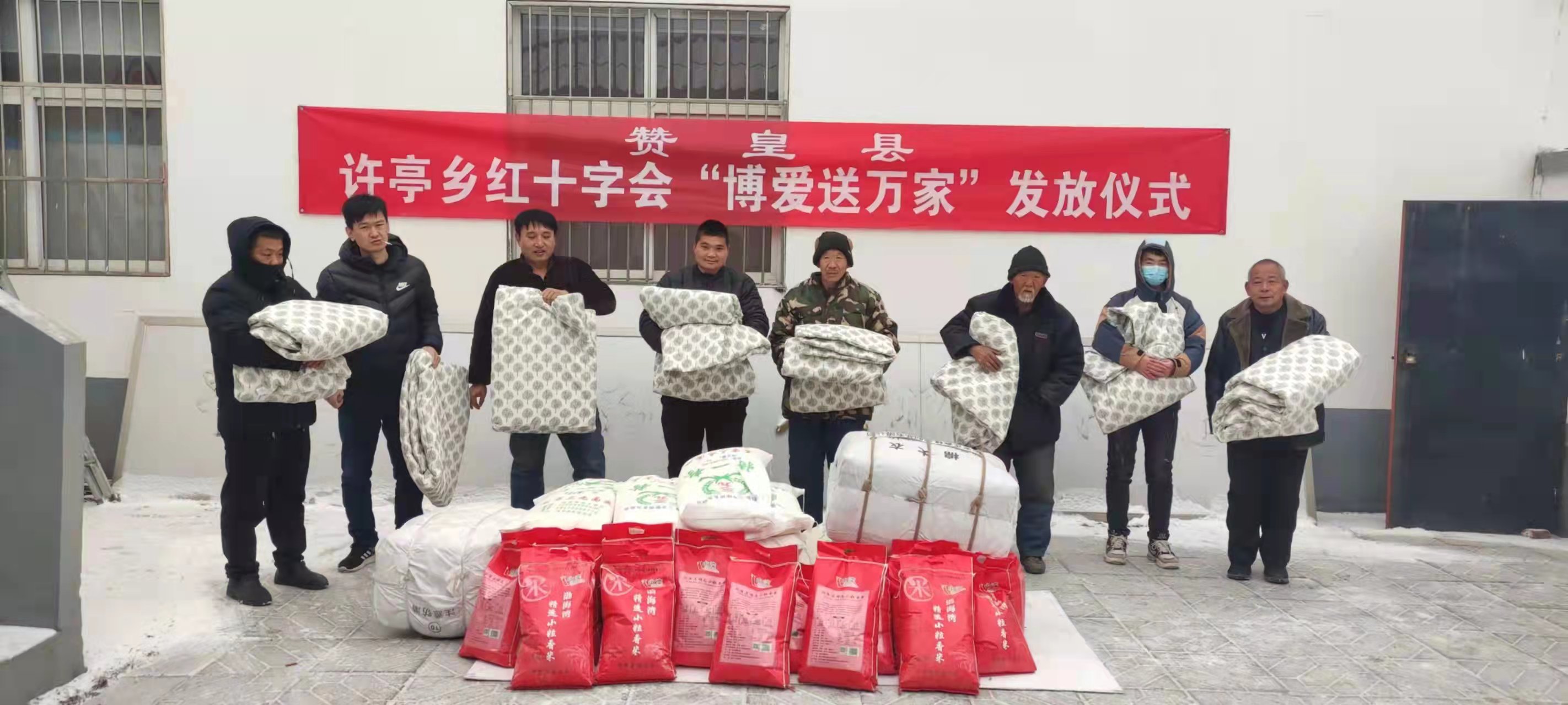 近日,赞皇县红十字会在开展2022年度“红十字博爱送万家”活动中,配合疫情防控要求,避免人员聚集,充分发挥各乡镇、村基层红十字会的作用,由各乡镇、村红十字会统一到县红十字会领取慰问物资并发放到困难群众手中。本次“博爱送万家”活动,共计发放棉大衣285件,棉被285条,面粉285袋,大米285袋,价值10余万元,慰问困难群众285户,涉及全县11个乡镇。