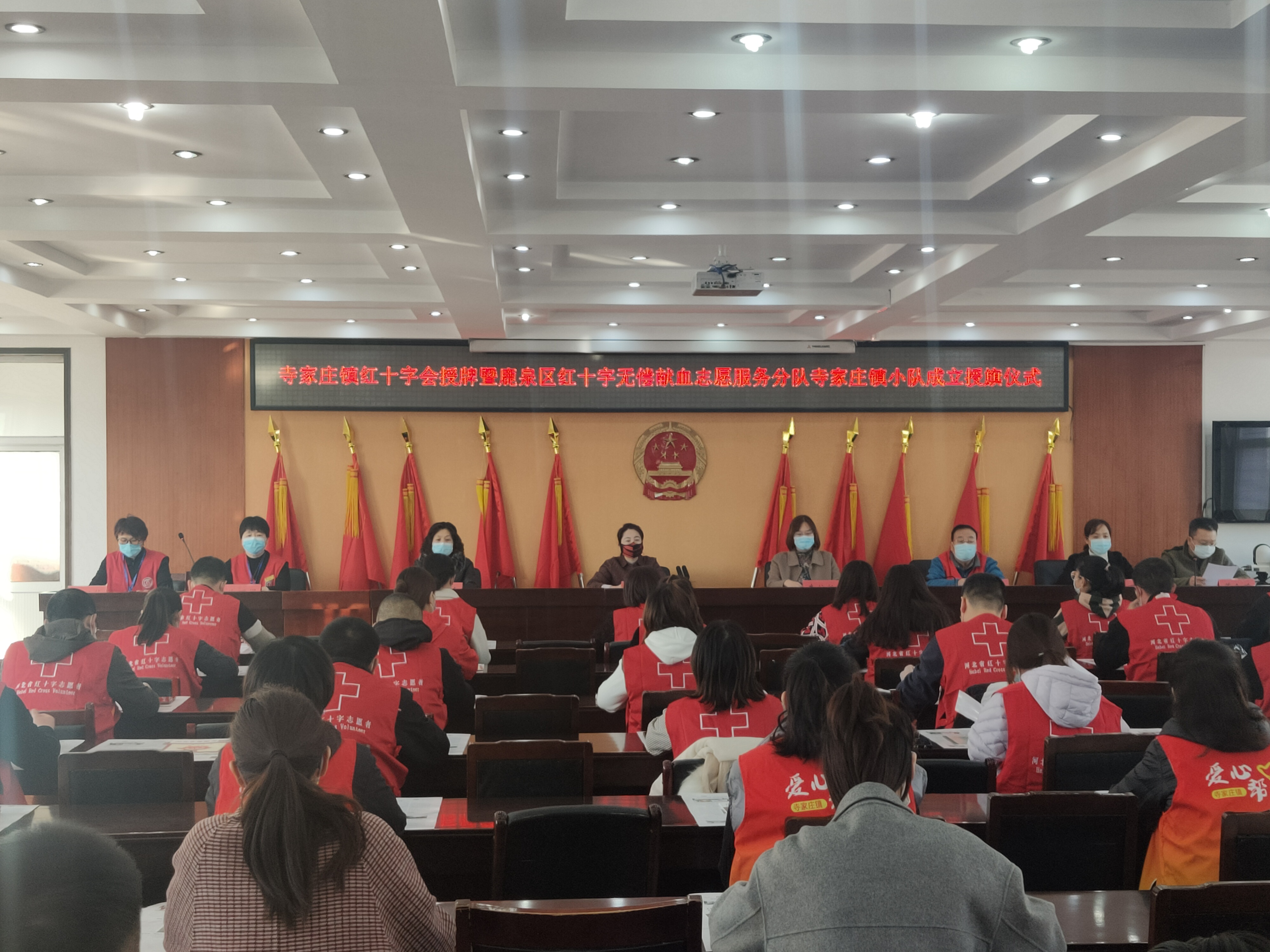 为进一步推动红十字基层组织建起来、活起来、强起来,牢固树立人民至上、生命至上的发展理念,2月27日上午,鹿泉区寺家庄镇红十字会授牌暨区红十字无偿献血志愿服务分队寺家庄镇小队成立授旗仪式在寺家庄镇政府举行。区红十字会、省血液中心及市红十字无偿献血志愿服务大队相关领导,红十字志愿者和媒体记者,共计50余人参加仪式。