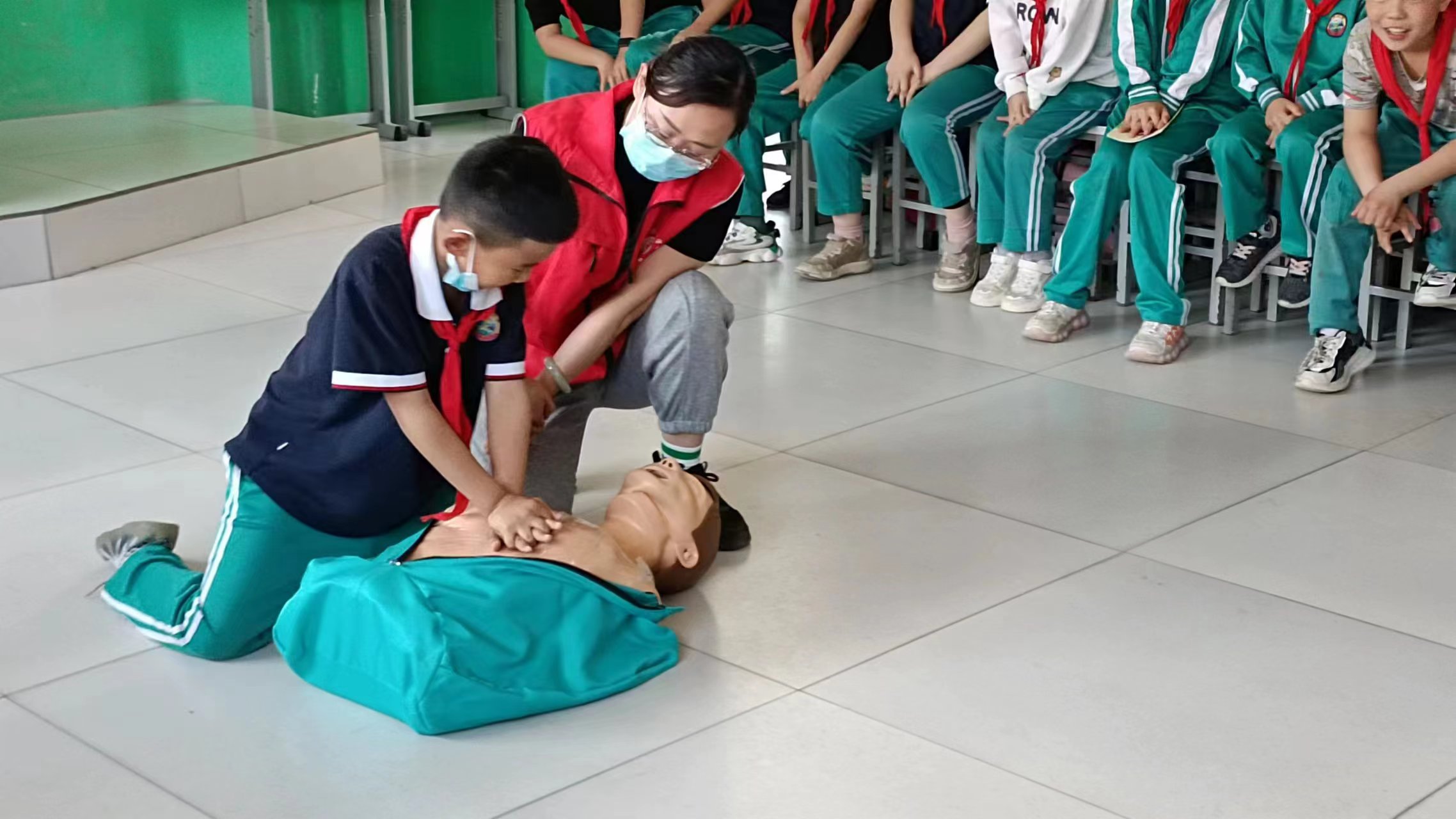 县红十字会安排专业应急救护培训师资给东关小学100多名师生开展应急救护知识培训。培训中,培训师资通俗易懂地讲解了心肺复苏、创伤救护基本技能(止血、 包扎)等方面的知识,师生们也在指导下进行心肺复苏和创伤救护技能的操作。