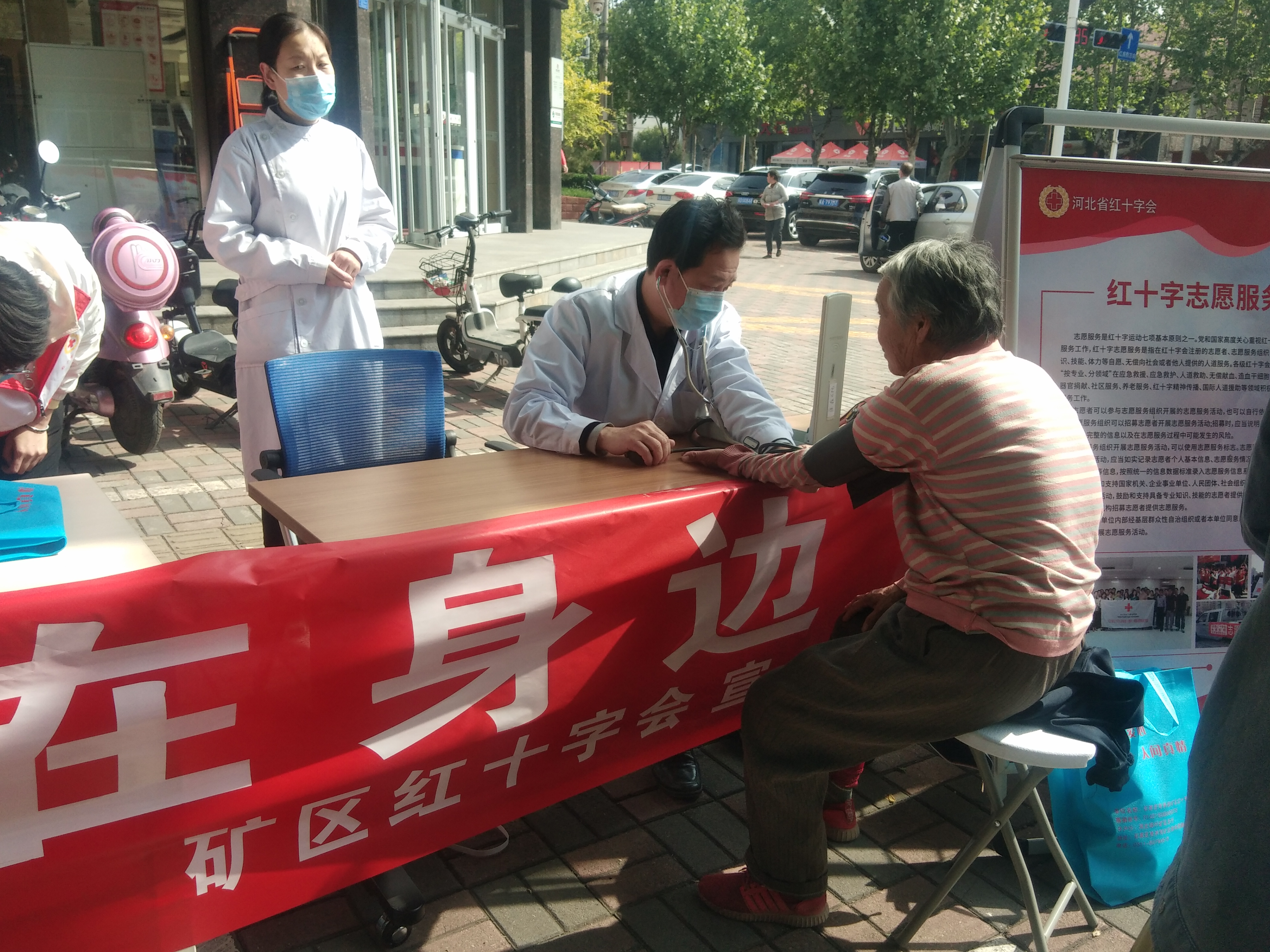 2023年5月8日是第76个世界红十字日,为大力弘扬“人道、博爱、奉献”的红十字精神,5月8日上午矿区红十字会在张家口银行外,围绕“生命教育 救在身边”主题,开展宣传纪念活动。邀请矿区惠中医院医护人员为过往群众现场义诊;红十字志愿者现场利用模拟人传授心肺复苏技能,与此同时组织志愿者在主要繁华商业街徒步宣传,各乡镇街道纷纷在各辖区开展了宣传活动,共发放应急救护知识手册、宣传书包等1500余份,受益群众4000余人。通过此次活动,进一步提高了群众对红十字会工作的认识,扩大了红十字会在社会上的影响,凝聚更多的社会力量参与和支持红十字事业。