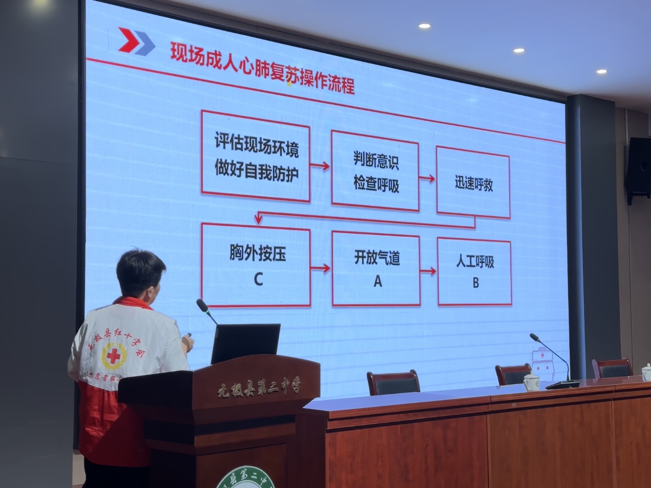活动中,红十字应急救护讲师为参加活动的志愿者们进行了应急救护基本程序、创伤外出血救护、心肺复苏等详细的理论讲解和示范操作,在场人员认真听讲,此次培训取得了良好的效果。通过这次活动,提升了志愿者们的救护意识,增强了实际救护技能,提高了对突发事件的应急处置能力,用实际行动践行了雷锋精神。