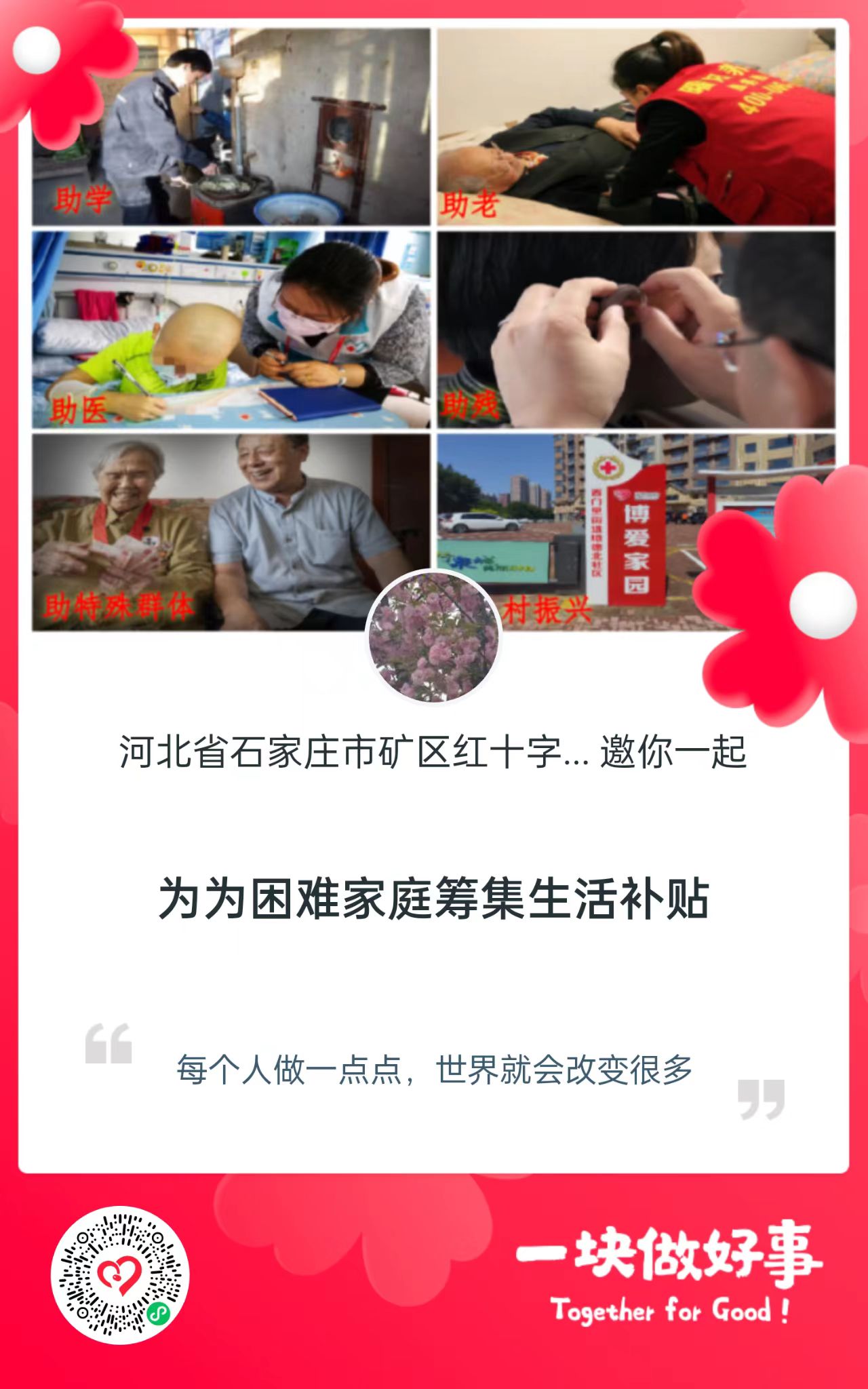 今年“5·8人道公益日”众筹活动,井陉矿区红十字会将重点参与中国红十字基金会、河北省红十字会、石家庄市红十字会在腾讯公益平台开设“六助爱心魔方”之助学项目和“爱心物资送万家”项目。
