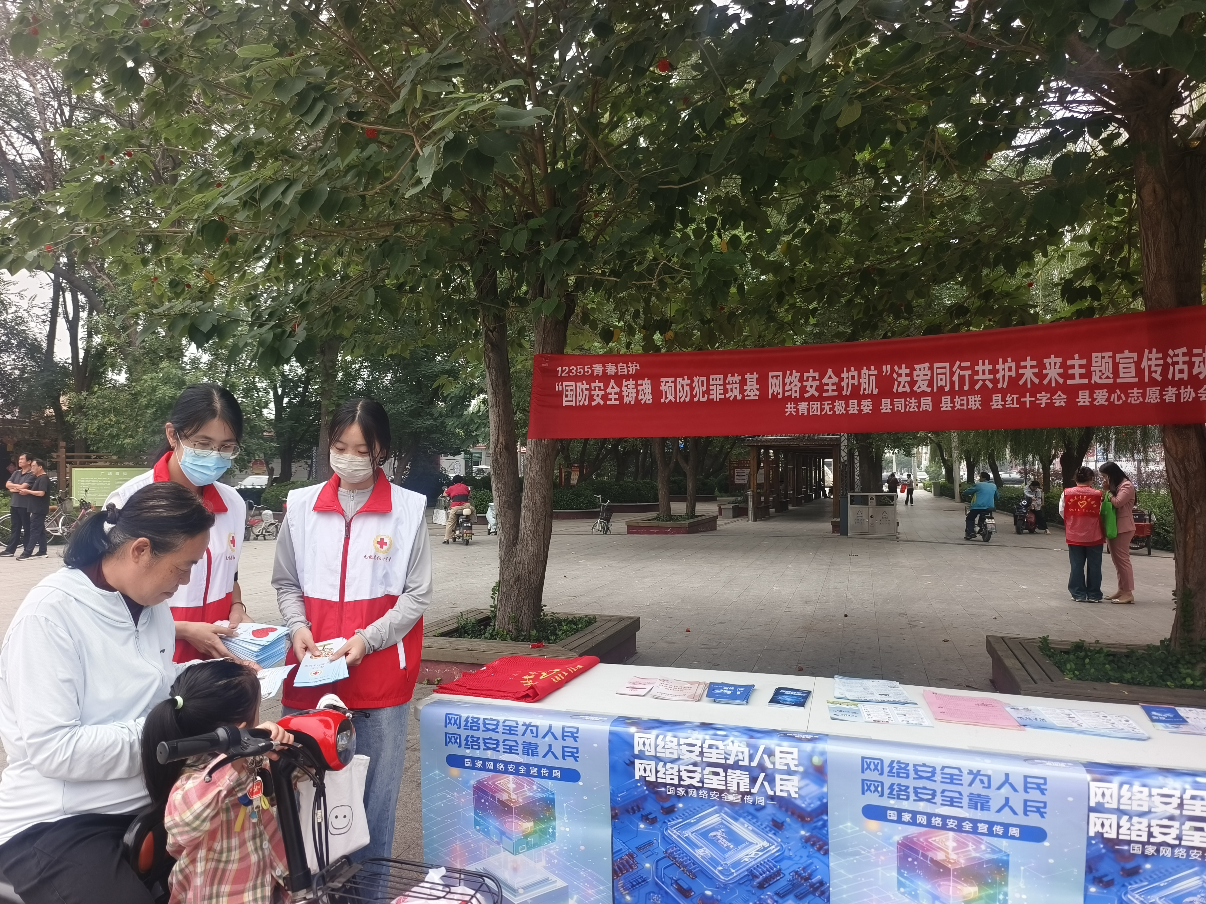 为了进一步增强公众的国防观念和网络安全意识,提升全县居民的爱国热情与自我防护能力,9月9日,无极县红十字会联合司法局、团县委、妇联、爱心志愿者协会在公园内举办网络国防安全教育活动。