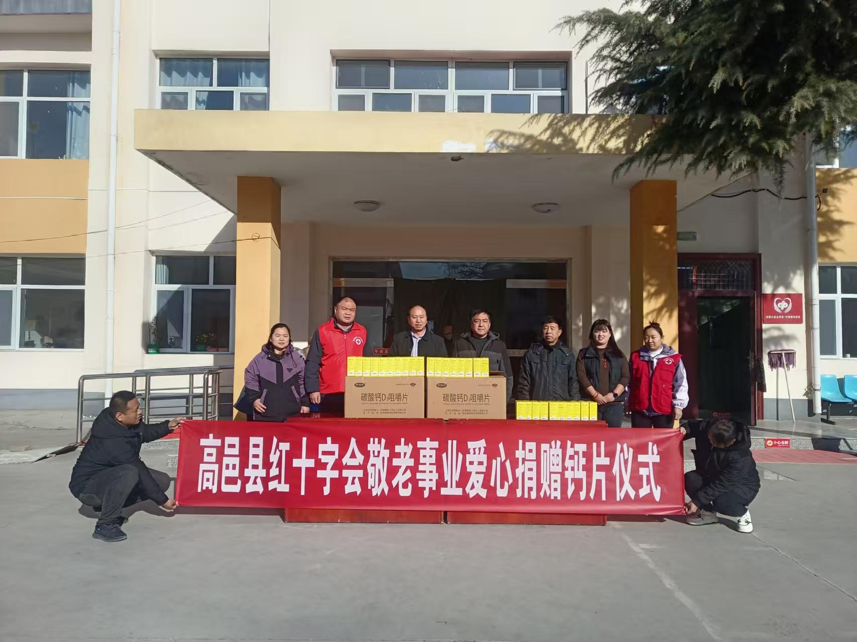 高邑县红十字会开展捐赠敬老院碳酸钙D3咀嚼片活动仪式