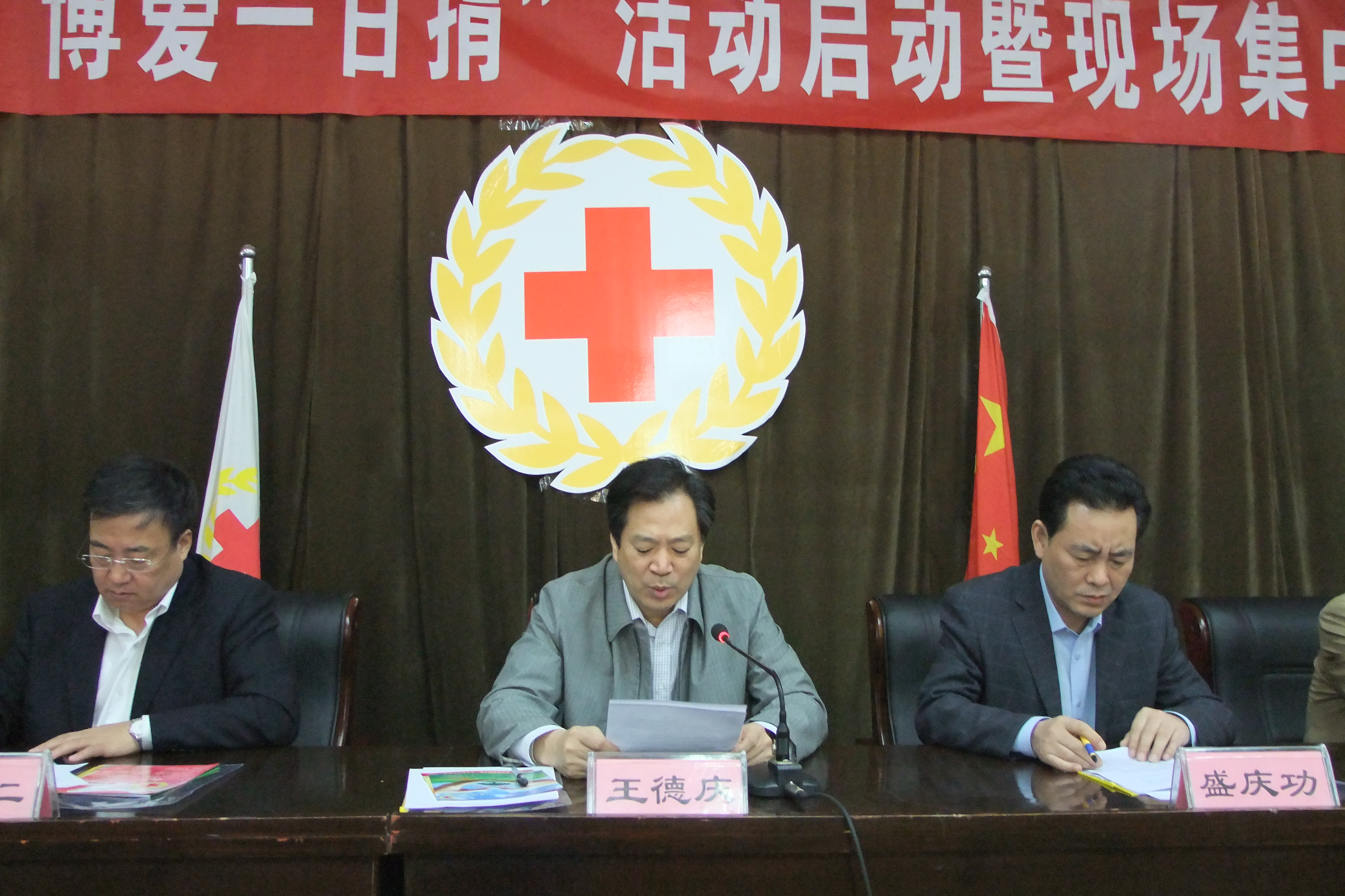 深泽县红十字会于4月17日上午召开“博爱一日捐”活动启动暨现场捐助仪式,县四大班子领导、县直各部门、各乡镇、驻深各单位企业一把手参加,会议由县红十字会会长、政府副县长张迎新主持会议,县委书记王德庆做了动员讲话,县四大班子领导带头捐款,到会人员纷纷慷慨解囊,踊跃捐款。