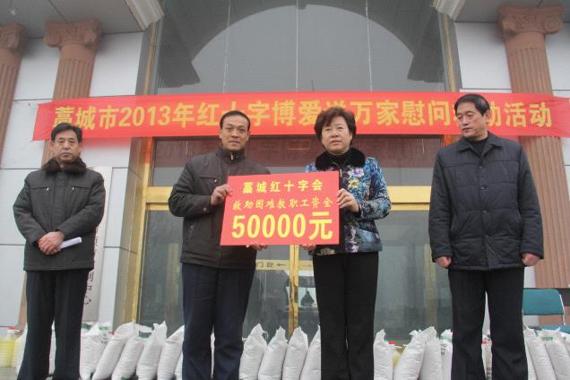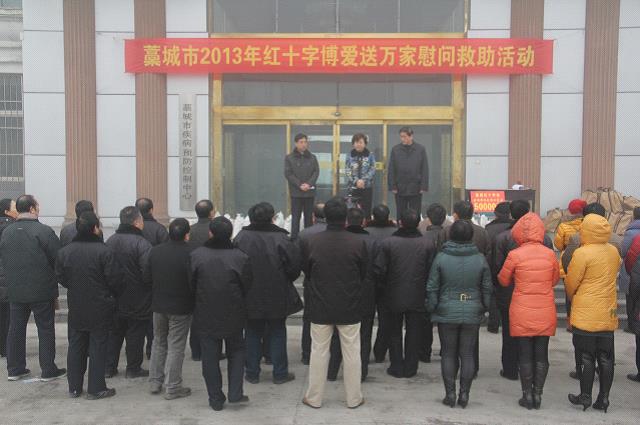 藁城市红十字会于2013年1月23日,在卫生局院内召开了“藁城市2013年红十字 ‘博爱送万家’慰问救助活动发放仪式”。仪式由藁城市红十字会常务副会长高志华主持,市政府副市长、市红十字会会长邓素雪出席,各乡镇(区)、市直有关部门主管领导、困难教师代表、特困大病患者家庭代表50余人参加,与会领导为受救助群众代表发放了救助金和救助物资,市电视台和报社进行了报道。此次活动, 藁城市红十字会 共筹集资金8.07万元,采取慰问金和物品两种形式进行慰问救助。一是对全市教育系统的80户困难教师家庭进行救助,共发放救助金5万元;二是对5户特困大病患者家庭代表进行救助,给予每户2000元救助金。共救助特困大病患者34人,发放救助金5.75万元;三是对全市城乡190户贫困家庭进行救助,发放了价值2.07万元的米、油及70条棉被等物品。受益家庭共275户。此活动弘扬了红十字“人道、博爱、奉献”精神,彰显了社会的关爱,把党和政府的关怀送到困难群众手中,使特困家庭能够过上一个温暖、祥和、欢乐的春节。