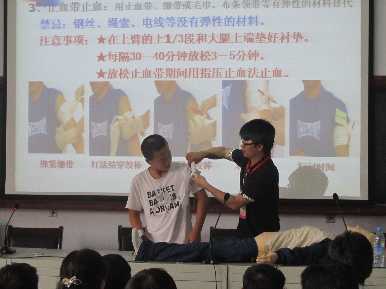 为了增强广大师生安全意识和自救互救能力,分别在矿区中学和矿区第一小学围绕红十字会基本知识、救护新概念、创伤救护(止血、包扎等)、意外伤害的相关救护(溺水救护、气道梗塞急救等)为全体师生进行了培训。