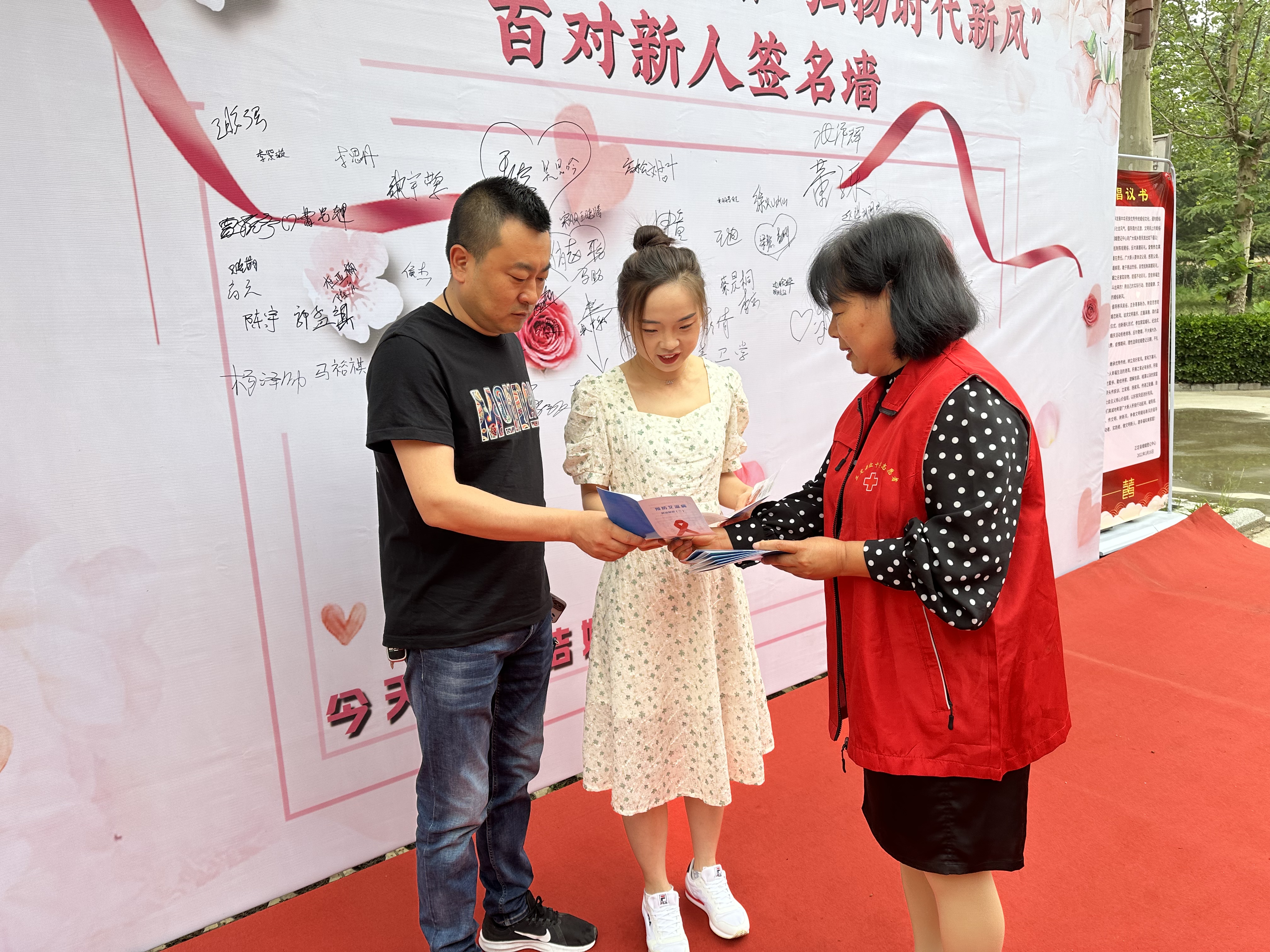 活动现场气氛热烈,吸引了众多年轻人前来了解和咨询,取得了良好的宣传效果。活动最后,各个部门的工作人员与新人一起在“倡导文明婚俗、弘扬时代新风”的签名墙上签名,共同表达了对文明、和谐婚姻的期待和追求。