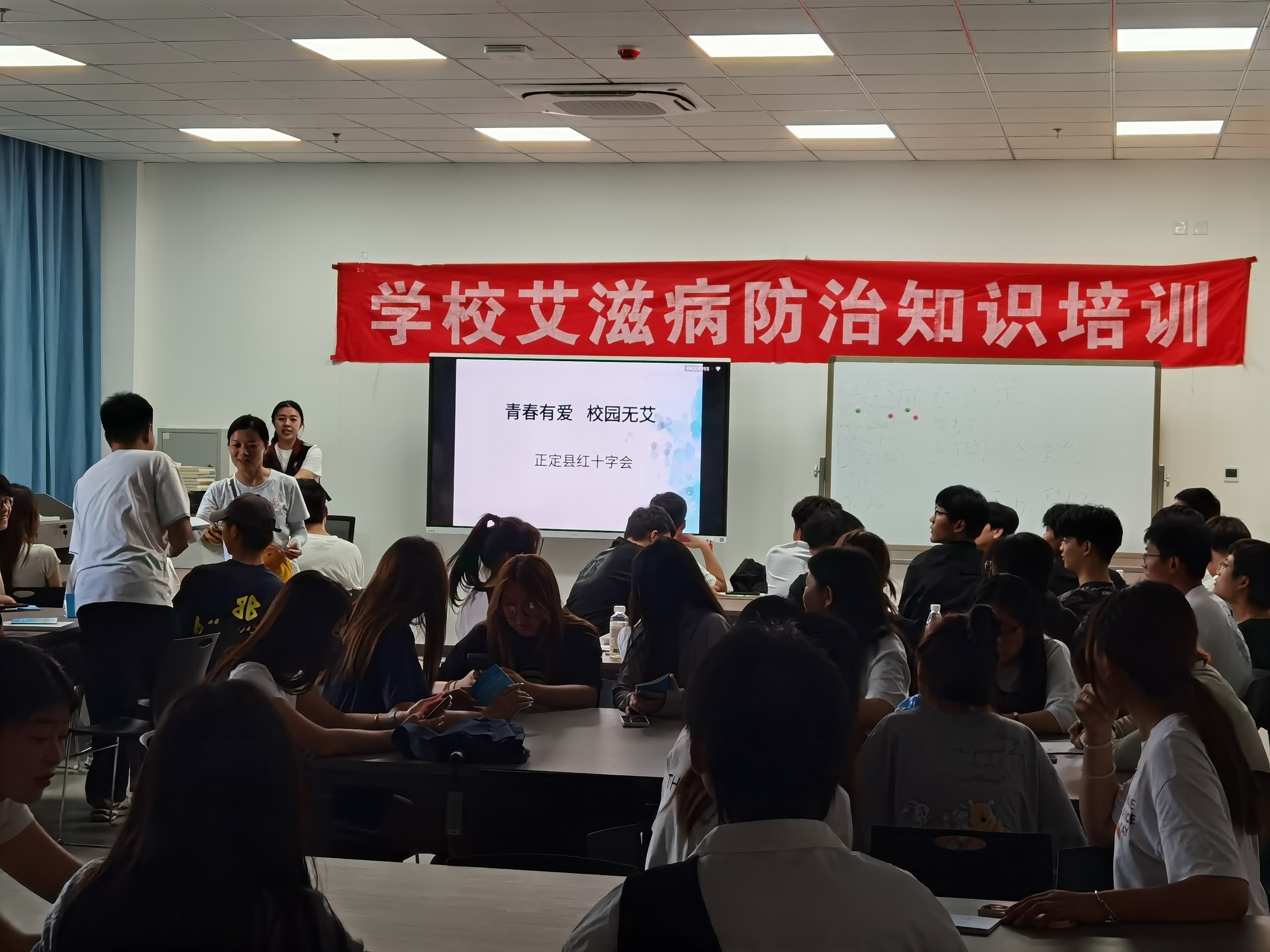 正定县红十字会走进石家庄职业技术学院为学生普及艾滋病防治知识