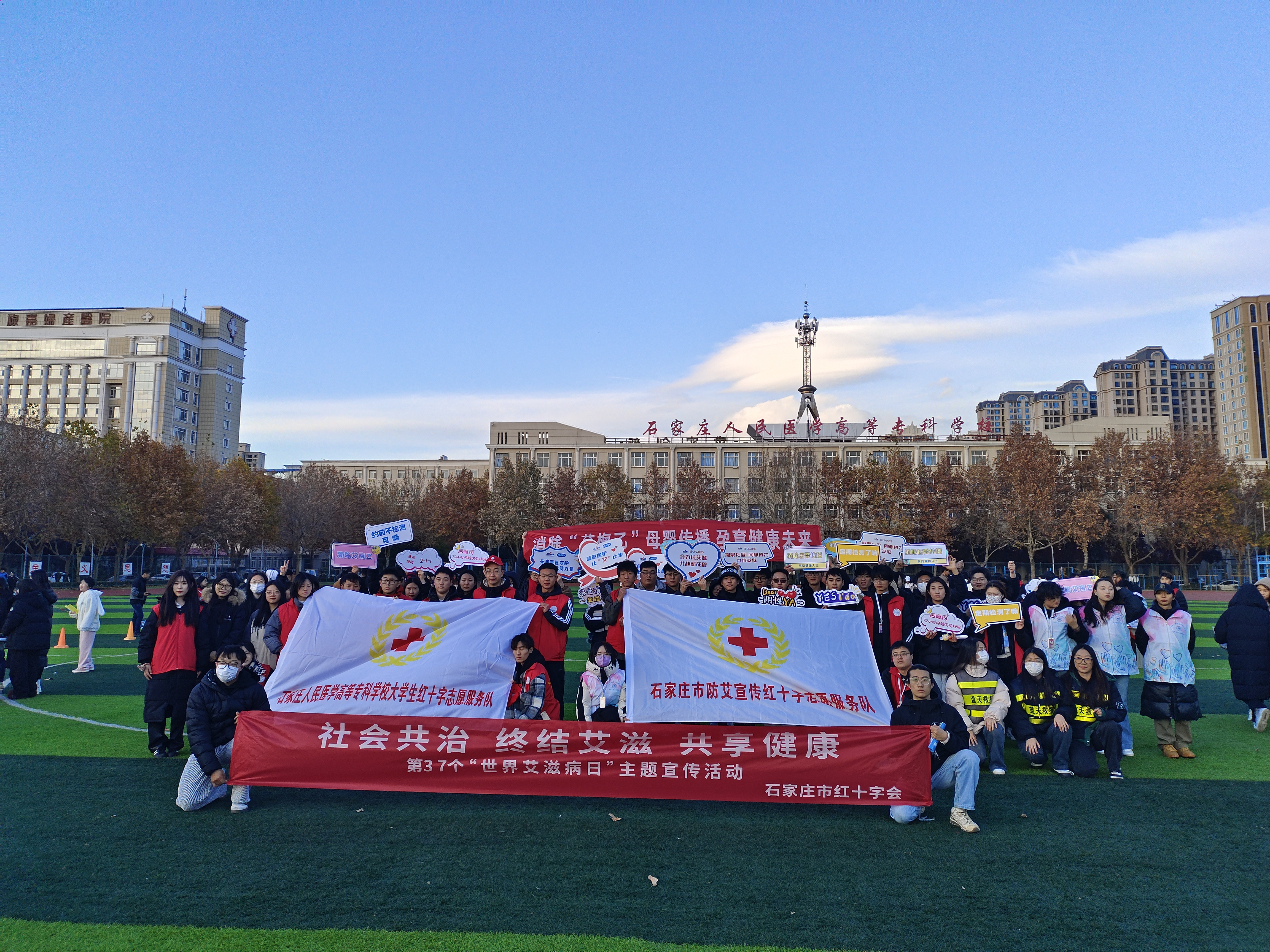 今年12月1日是第37个“世界艾滋病日”,宣传主题为“社会共治,终结艾滋,共享健康”。为弘扬“人道、博爱、奉献”的红十字精神,进一步宣传普及科学预防艾滋病知识,增强自我预防控制艾滋病的意识和能力,11月27日,石家庄市红十字会联合石家庄市人民医学高等专科学校大学生红十字志愿服务队、石家庄市防艾宣传红十字志愿服务队,在石家庄市人民医学高等专科学校校园内共同开展了“世界艾滋病日”主题宣传活动。