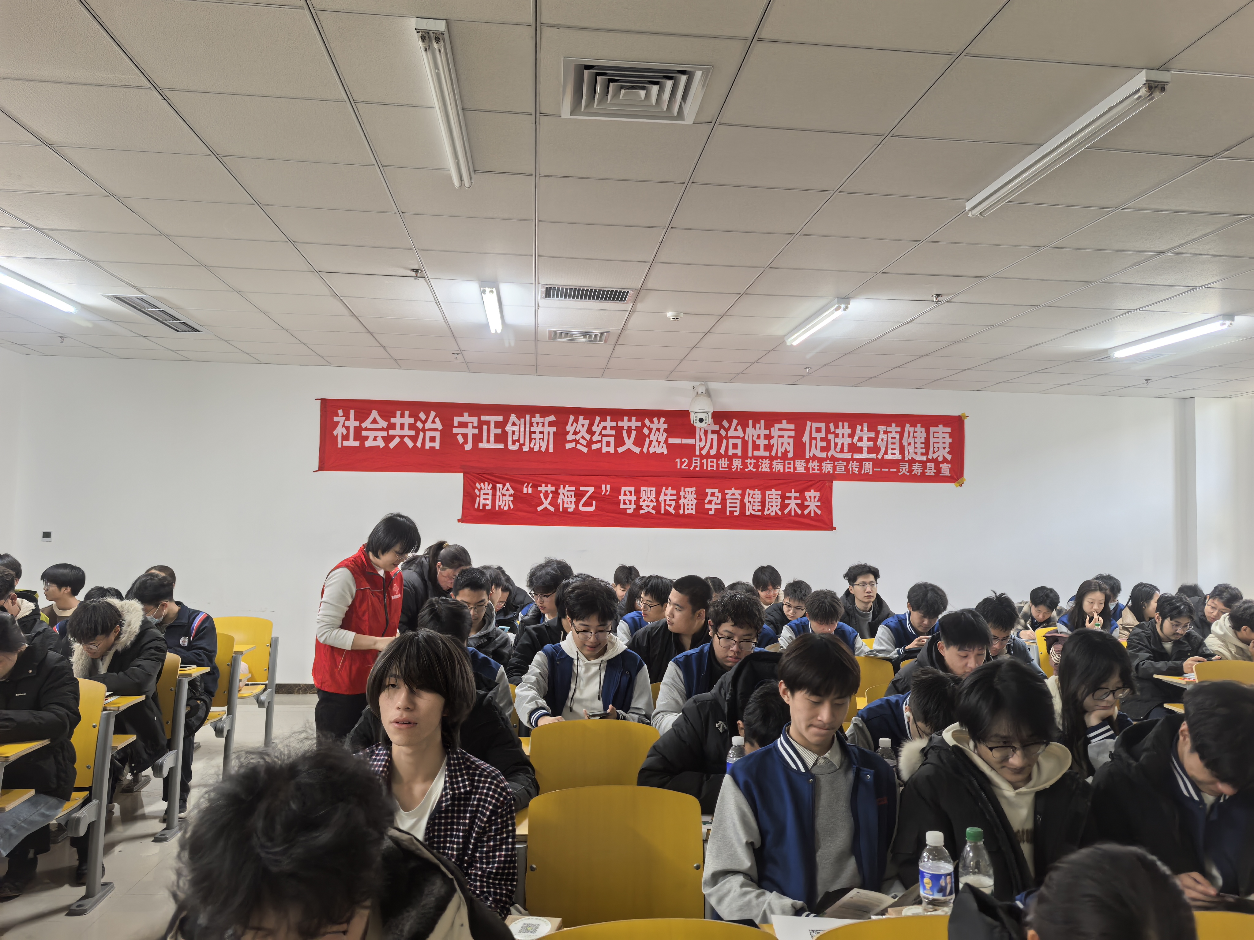 11月28日,县红十字会联合县卫生健康局、疾病预防控制中心到石家庄铁路职业技术学院进行艾滋病防治的宣传培训。活动通过市级专家授课、现场发放宣传资料、答疑解惑等科普知识。12月1日,在县防艾办共同组织下,县红十字会在内的各成员单位在县街心广场开展宣传,现场通过发放宣传折页、摆放公益展板等形式,对广大民众进行艾滋病防治知识宣传,提醒大家科学防艾、避免谈艾色变。