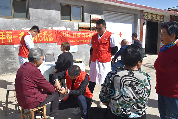 2018年9月28日,石家庄市政府办公厅、市红十字会工作人员及红十字志愿者共20余人,赴灵寿县牛城乡中倾井村开展了精准扶贫活动。