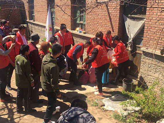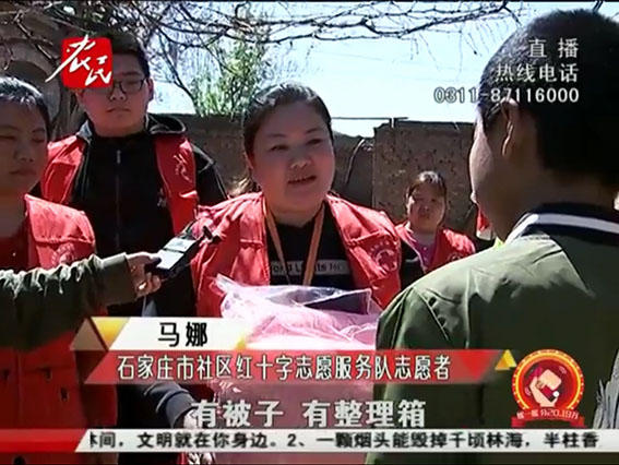 为了能给这个不幸的家庭送上一丝的温暖, 4月14日上午,石家庄市社区红十字志愿服务队的十多位志愿者来到东元村,看望贾彦丽一家。志愿者们用募集的善款购置了一千多元的生活及学习用品,志愿者马娜还亲手为贾彦丽的儿子做了一床棉被,志愿者魏丽宁将剩余的5200元慰问金亲手交到贾彦丽丈夫手中,贾彦丽的丈夫接过慰问金,连声感谢志愿者的关注和爱心。