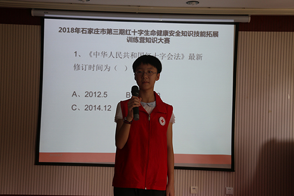 石家庄市红十字会副会长、志工委主任崔胜明同志主持开营仪式