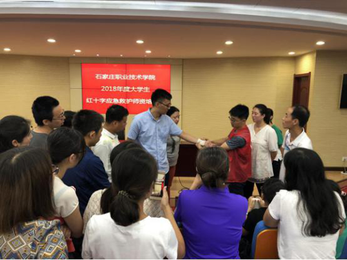 为广泛普及应急救护知识,提高广大高校学生的自救互救能力,深入推进平安校园建设,7月9日—7月13日,石家庄市红十字会在石家庄职业技术学院开展了为期5天的救护师资培训,共计81名师生参加了培训。此次培训授课团队由市红十字会资深救护师资梁大伟、范彦军和中医学院心理学专家刘艳红等6人组成。