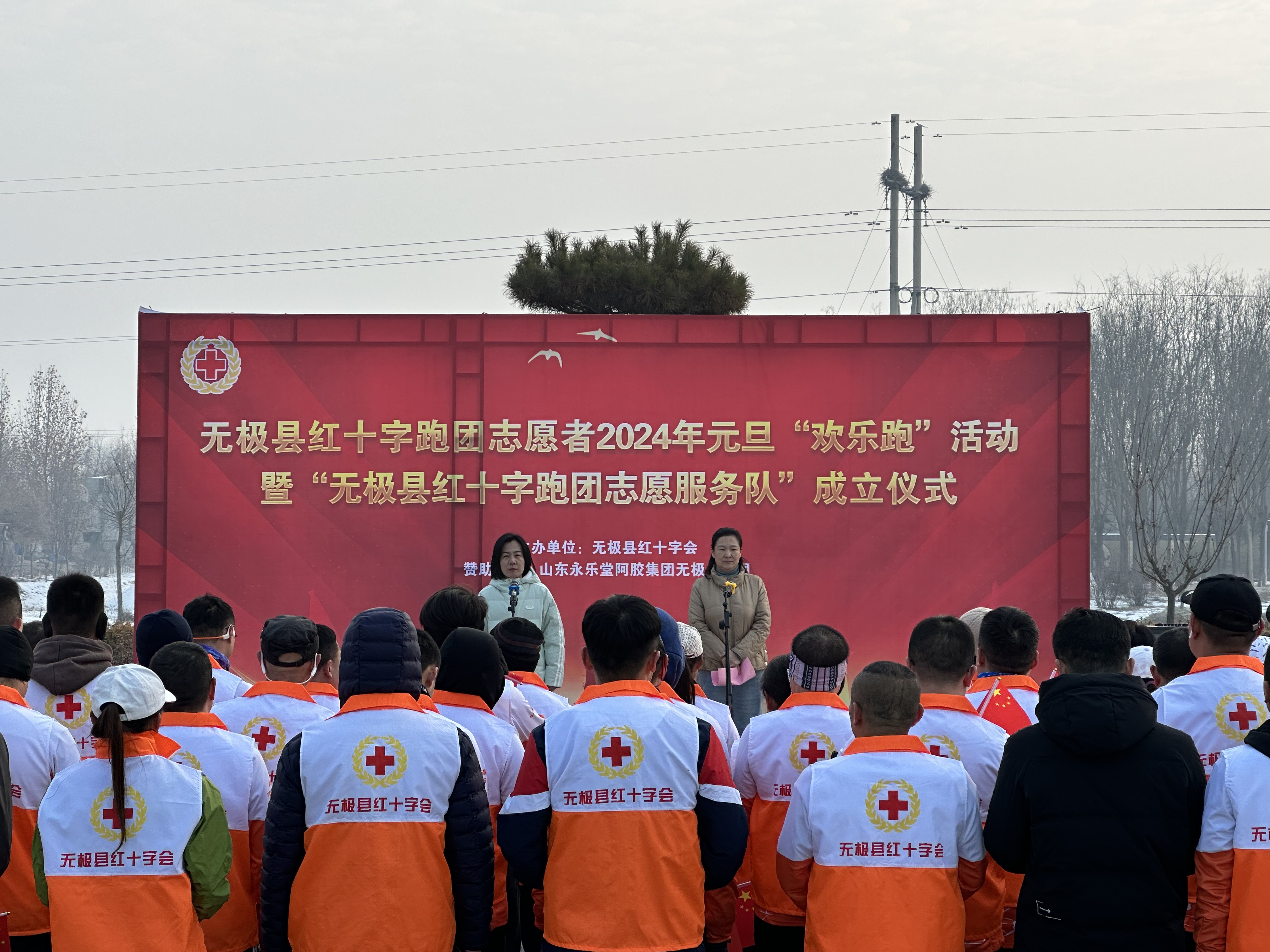 无极县红十字会组织跑团志愿者开展2024年元旦“欢乐跑”活动