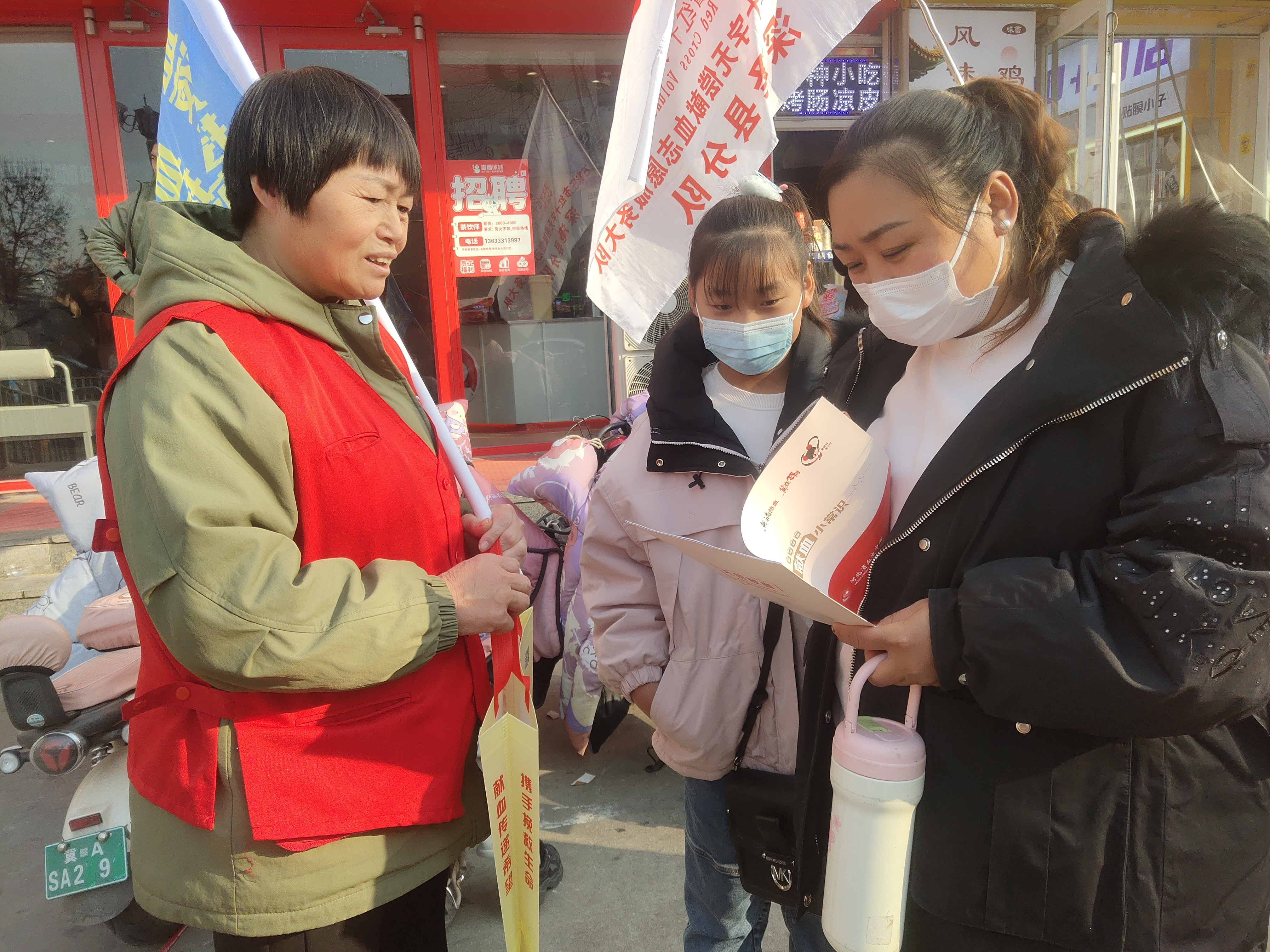 活动于13:30在深泽县红十字会正式启动。16名志愿者身着整齐规范的服装,手持专业宣传手册、肩扛鲜艳旗帜,沿着既定路线有序进发。他们途经益佳悦城市广场、步行街,抵达县医院后折返红十字会,全程全面覆盖了城区核心区域与医疗服务节点。在3小时的徒步行程中,志愿者们不仅锤炼了坚韧不拔的意志品质,还广泛普及了无偿献血知识。年轻志愿者与年长志愿者相互支持、紧密协作,充分彰显了强大的团队协作力量,深刻诠释了“互助”精神的丰富要义。