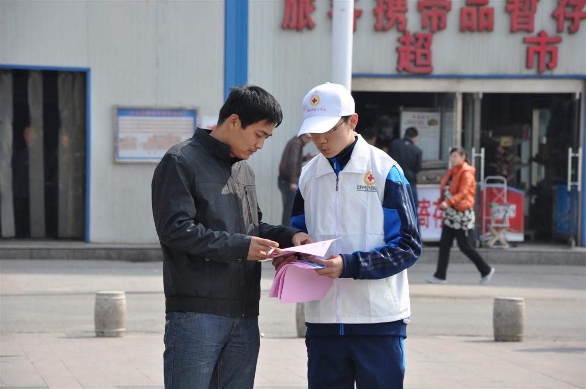 2013年3月24日是第18个“世界防治结核病日”,石家庄市红十字会在石家庄北站广场组织10名志愿者,围绕“你我共同参与、消除结核危害”,开展健康知识宣传为主要内容的志愿服务宣传活动,普及结核病防治知识,提高全社会对结核病防治工作的认识。