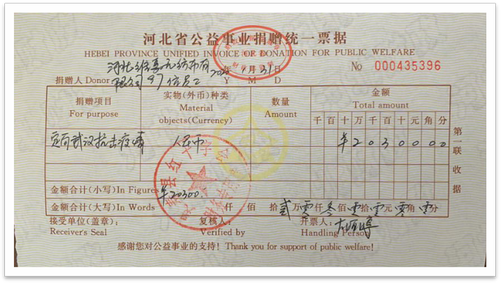 灵寿县红十字会收到首笔抗击疫情定向捐款