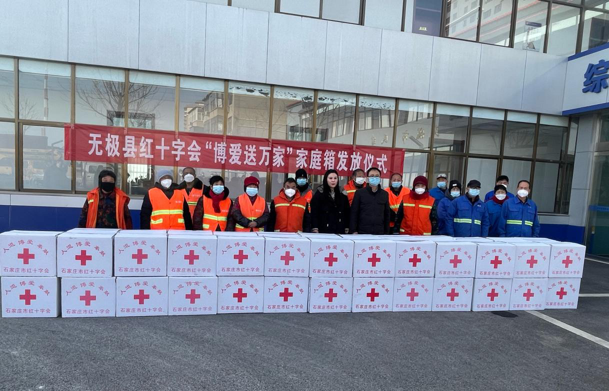 1月28日,无极县红十字会组织2023年度“红十字博爱送万家”家庭箱发放仪式,副县长刘云芝出席仪式,将装有大米、面粉、食用油和棉衣的过节生活物资的家庭箱发放给了50名家庭困难的环卫及园林工人,带去党和政府的关心和慰问,帮助他们度过一个温暖、祥和的春节。