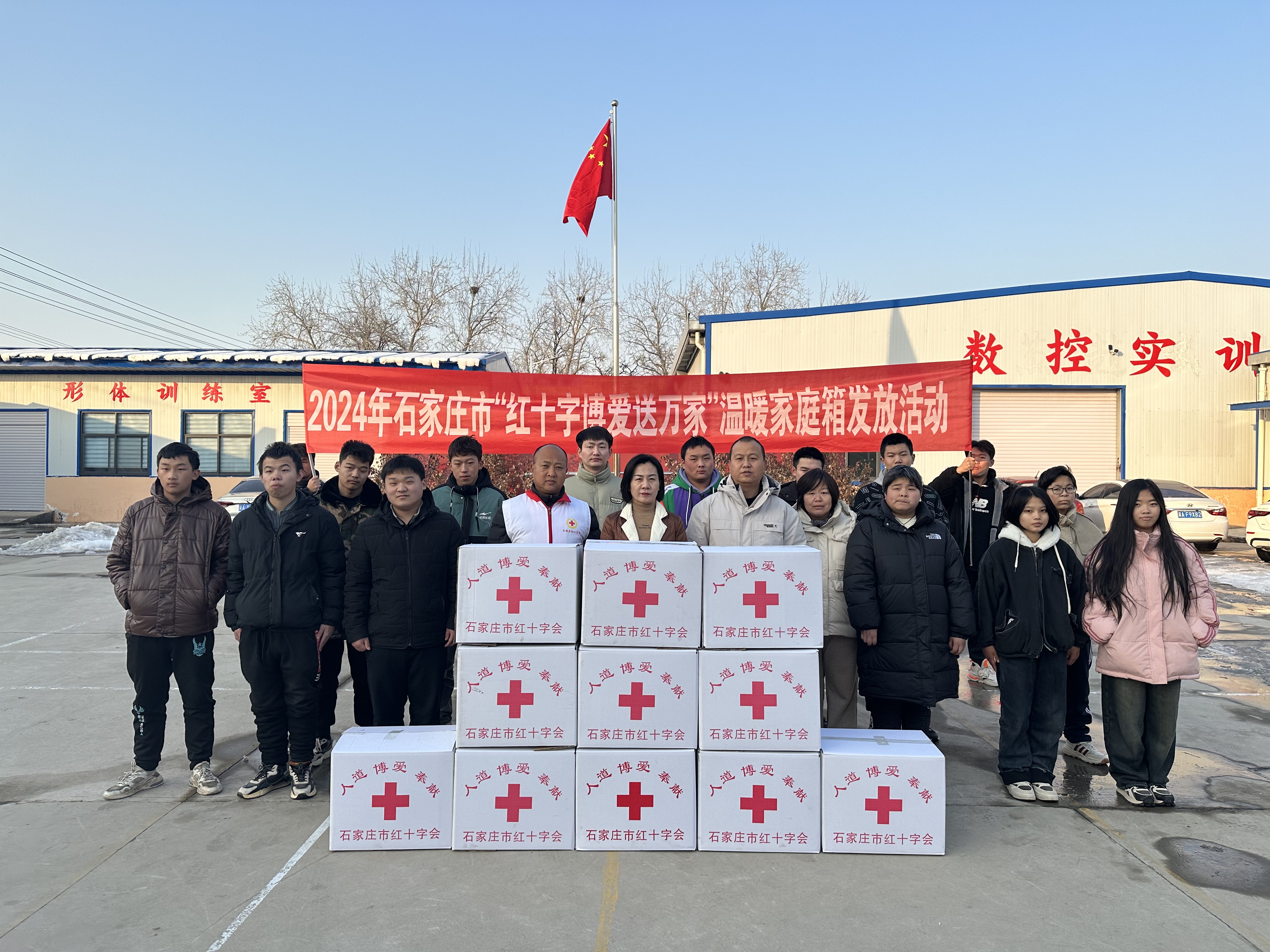 寒冬送关怀,情深暖人心。为传递和弘扬“人道、博爱、奉献”的红十字精神,把关爱困难弱势群体的工作落到实处,12月26日,无极县红十字会来到劳动技工学校开展“博爱送万家”家庭箱发放活动。为11个困难学生家庭送去石家庄市红十字会分配的温暖家庭箱,每箱价值303元,包括米、面、油、棉衣等日常生活用品和保暖物品。