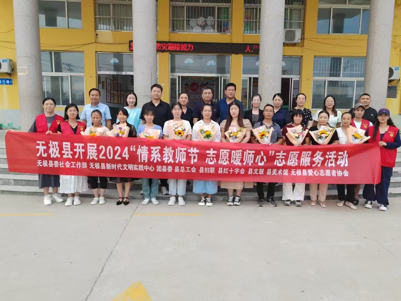 在教师节来临之际,为表达对教师的崇高敬意和深切关怀,无极县红十字会与县委社会工作部、团县委、县妇联、县爱心志愿者协会等部门联合举办教师节慰问活动,向辛勤耕耘在教育战线上的广大教师致以节日的问候和美好的祝福。