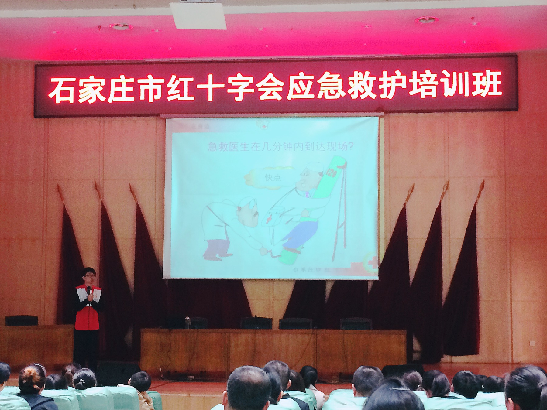 4月13日,石家庄市红十字会培训讲师在裕华区政府一楼会议厅对裕华区基层医务工作人员开展了应急救护知识进社区的活动,此次,共有70名基层医务工作人员参加了培训。培训中,通过视频、现场演示并采取互动的形式,老师和参加培训人员进行了深入的交流。