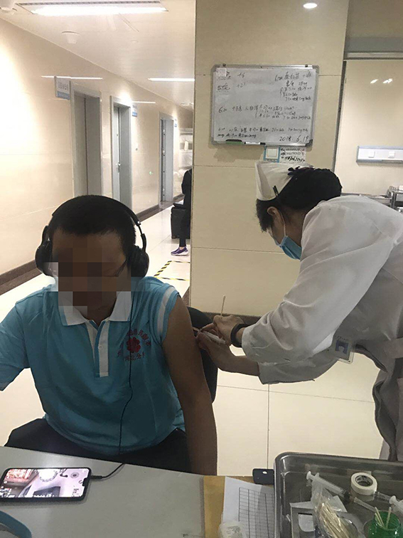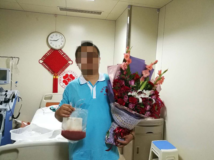 2018年6月16日,王先生在医院开始捐献前准备,抽血化验,注射动员剂。6月20日开始采集造血干细胞