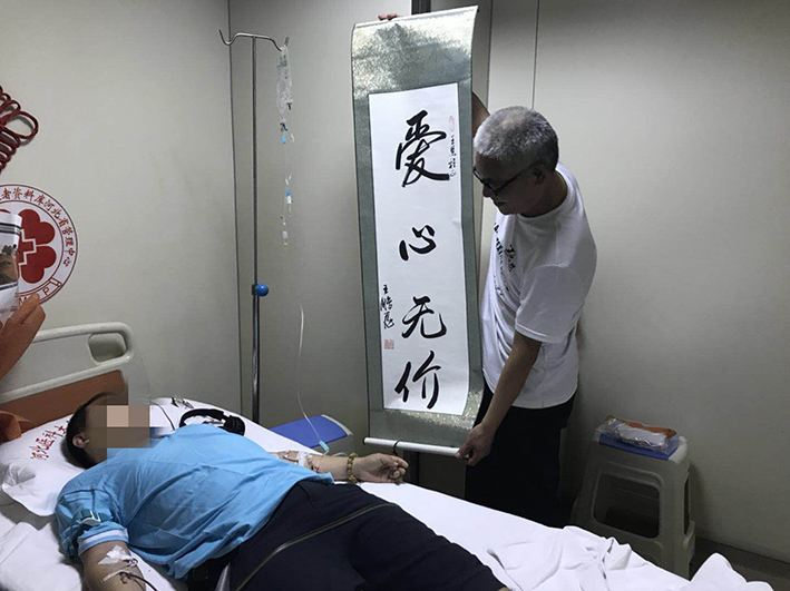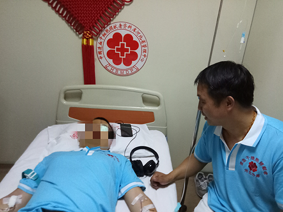 河北分库第227例造血干细胞捐献者刘振林到采集现场看望,为王先生加油