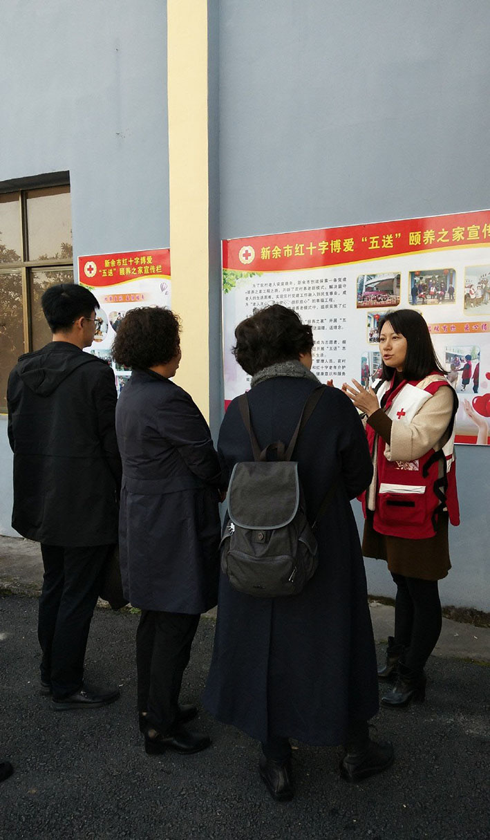 11月28-30日,石家庄市红十字会党组书记、常务副会长王鹏飞一行5人到江西省新余市红十字会考察交流。先后参观考察了新余市红十字“博爱五送颐养之家活动”项目、康乐红十字老年介护服务中心、红十字老年介护服务中心、红十字生命安全体验教室和东鑫曜阳养老公寓。在分宜县角元村颐养之家,王鹏飞会长一行与颐养之家的老人一起互动唱歌、包饺子,与新余市红十字志愿者一道为老人“送快乐、送健康、送理念、送技能、送温暖”。