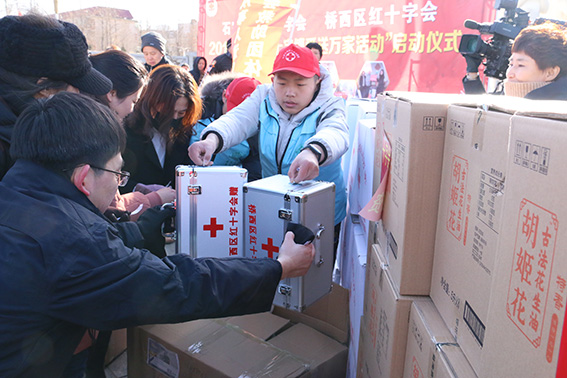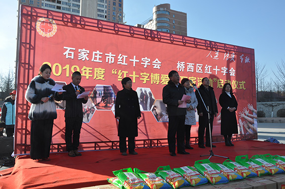 为了积极响应市委、市政府提出的打好“精准扶贫、精准脱贫”攻坚战的号召,1月15号上午,石家庄市红十字会、桥西区红十字会在西清公园法制广场举行全市2019年度“红十字博爱送万家”活动启动仪式。石家庄市红十字会党组书记、常务副会长王鹏飞同志、副会长张玉安同志,桥西区副区长、红十字会会长赵月芬同志,常务副会长于景新同志参加启动仪式。桥西区政府、桥西区红十字会、红十字志愿者、各街道、社区负责人,受捐群众代表共计300余人参加活动。