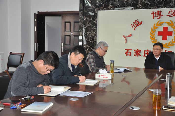 1月31日,石家庄市红十字会召开全体人员会议,进行节前教育。会上,郝瑞起秘书长传达了市委、市政府办公室关于转发《中共河北省委办公厅 河北省人民政府办公厅<关于做好2019年春节期间有关工作的通知>》的通知,王鹏飞常务副会长就春节期间的工作提出具体要求,并叮嘱大家要注意人身安全,在家多陪陪父母。