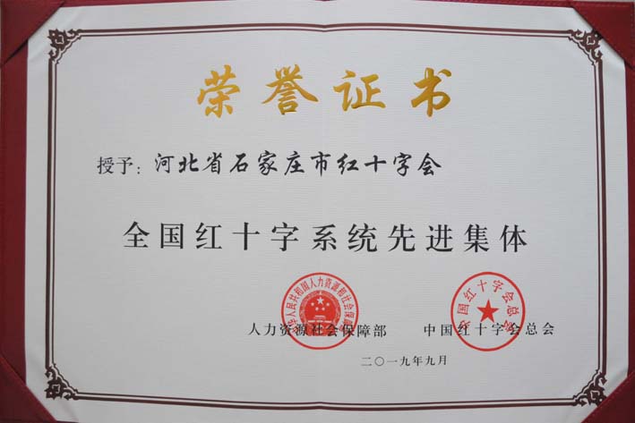石家庄市红十字会荣获“全国红十字系统先进集体”荣誉称号