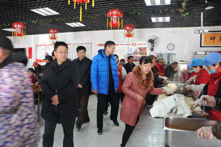 参观“仁爱家”红十字志愿服务工作站免费素食餐厅,老人们正在排队打饭