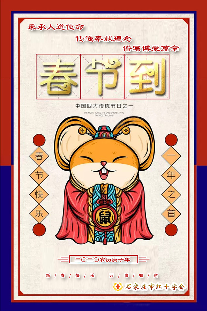 一年四季春为首,十二生肖鼠为先。值此新春佳节到来之际,石家庄市红十字会恭祝全市人民新春快乐,向关心支持红十字事业发展的各级领导、社会各界爱心人士、红十字工作者、会员和志愿者表示衷心的感谢和诚挚的问候!