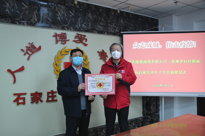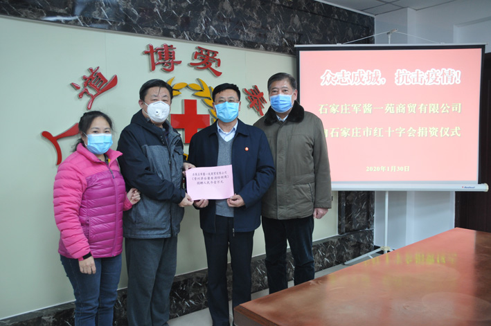 连日来,“新型冠状病毒感染的肺炎”疫情牵动着全国人民的心,我市社会各界也在时刻关注,爱心企业和爱心人士纷纷慷慨解囊,支援新型肺炎疫情的防控工作。石家庄市市红十字会于30日收到河北家园农业科技有限公司用于支持疫情防控捐赠款15万元。30日下午,河北德源商贸有限公司和石家庄市军酱一苑商贸有限公司分别向石家庄市红十字会捐赠善款17万元和1万元用于支持武汉市和石家庄市疫情防控。捐赠双方举行了简短的交接仪式,石家庄市红十字会党组书记、常务副会长王鹏飞代表市红十字会接受捐赠。河北德源商贸有限公司董事长郑秋芳说:“这次全国面临病毒侵蚀,病毒来势汹汹,作为民营企业,必须要有社会责任和担当,一方有难八方支援,尽我们的力量为社会为国家做点贡献,让人们早日恢复正常生活。”石家庄市军酱一苑商贸有限公司负责人李玮红也表示,在特殊时期,国家遇到困难时,应该积极为疫情防控贡献一份力量。