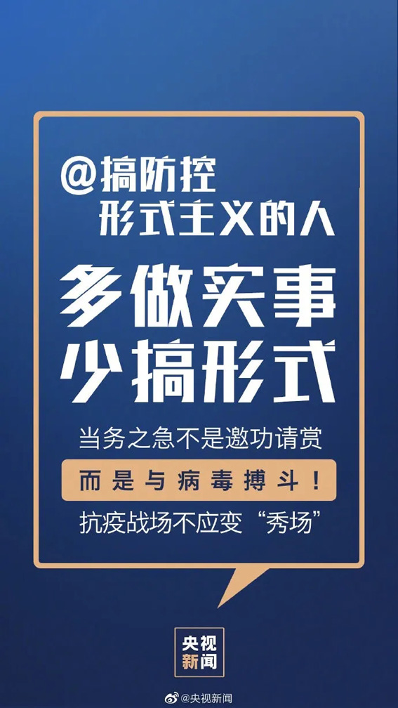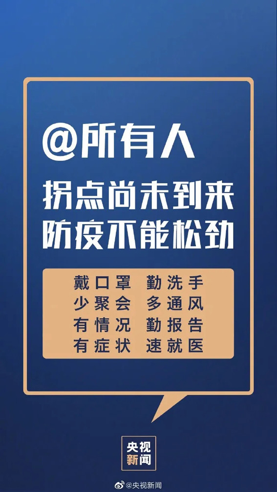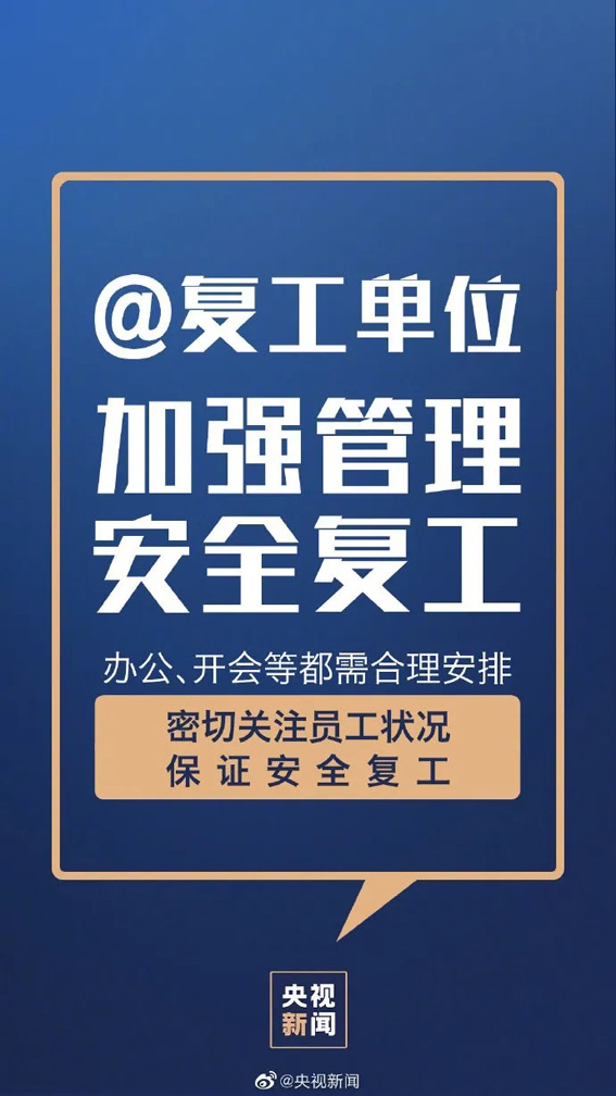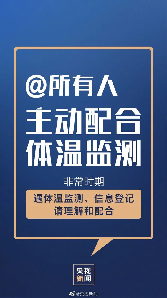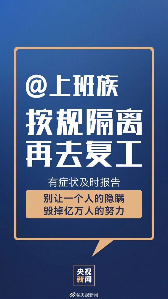 ①阻击病毒不能有死角,排查要彻底;②医护人员工作不易,请给他们多点耐心;③勿搞防控形式主义,多做实事;④复工单位加强管理,安全复工;⑤上班族按规隔离,再去复工;⑥拐点尚未到来,防疫不能松动;⑦主动配合体温监测;⑧不信谣、不传谣、关注权威消息。转!