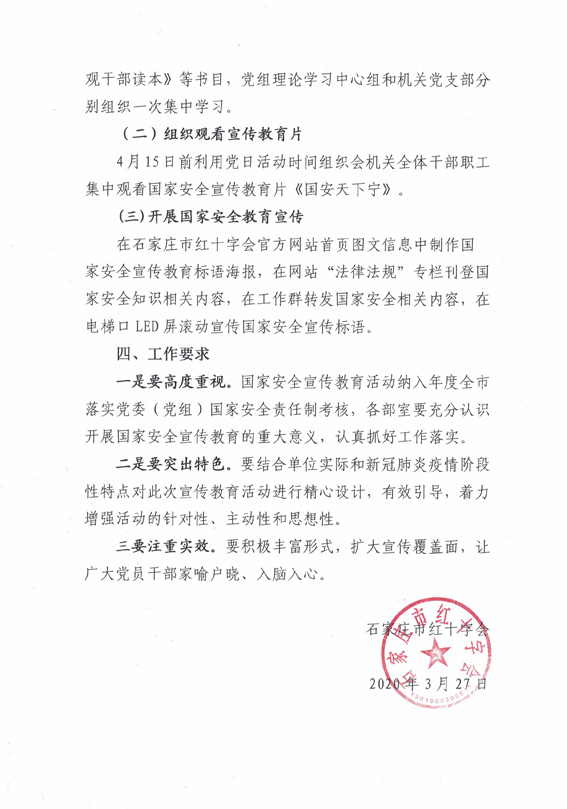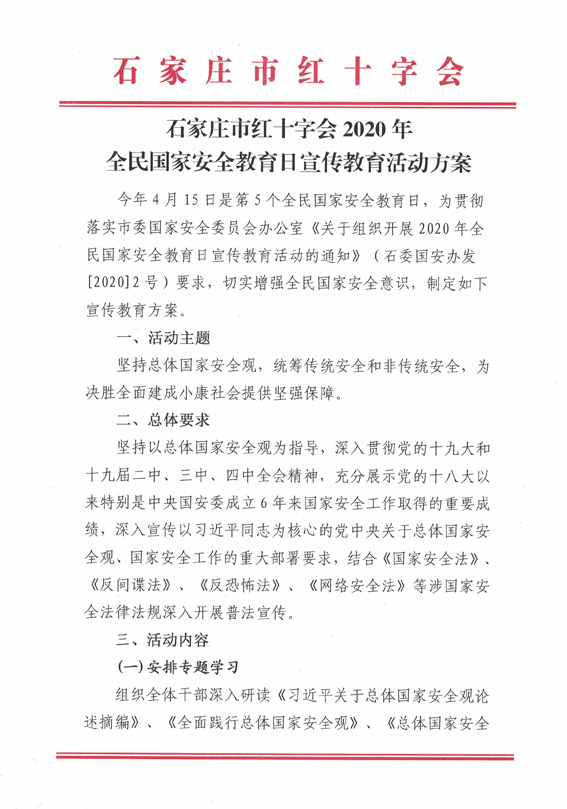 石家庄市红十字会2020年全民国家安全教育日宣传教育活动方案