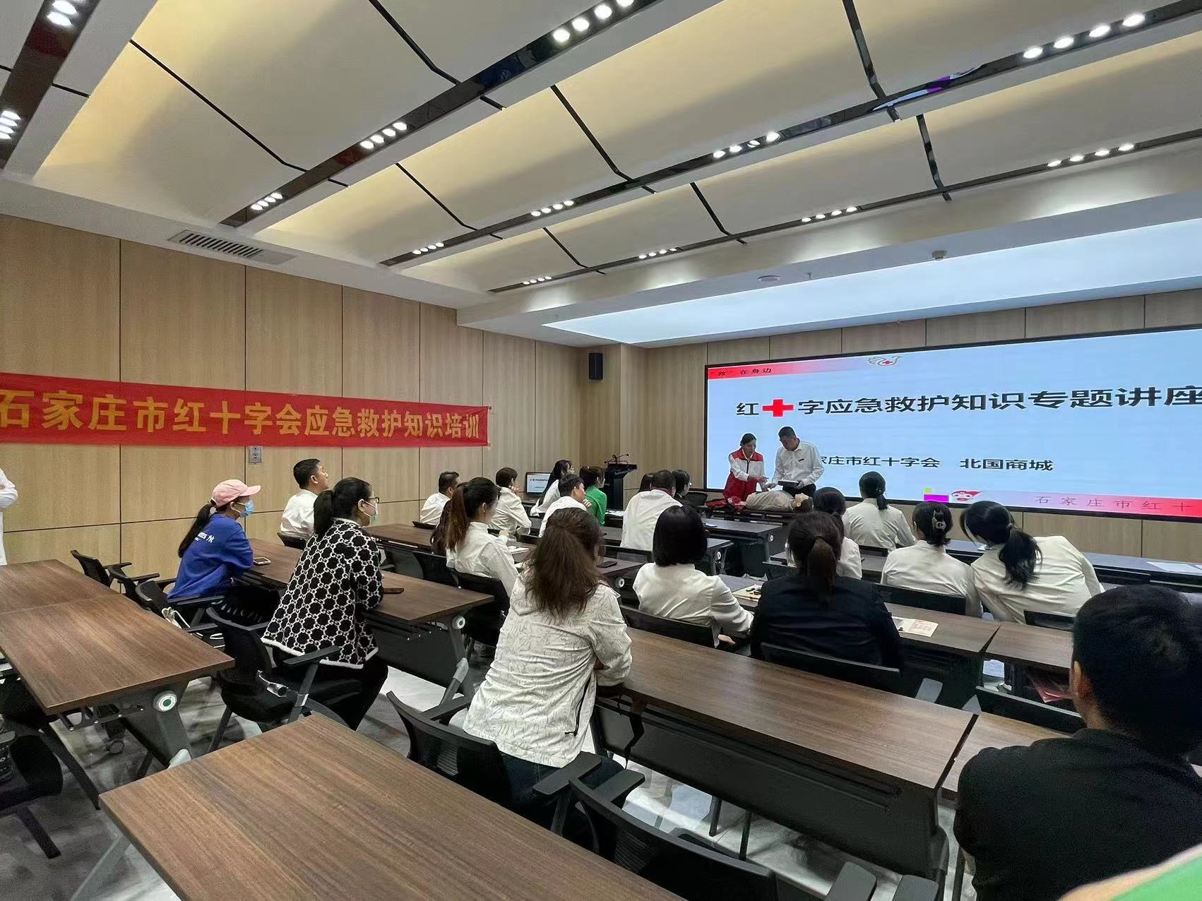 10月16日,石家庄市红十字会在北国商城举办了红十字应急救护培训公益培训班,商城行政、服务员等部分岗位近40名员工参加了培训。