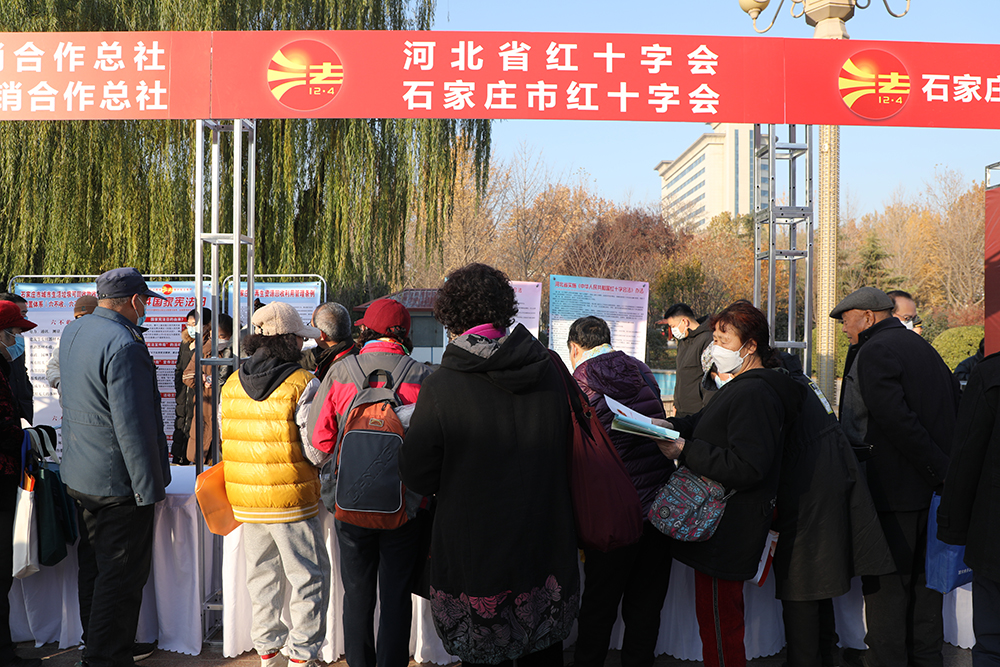 为深入学习宣传贯彻习近平总书记关于宪法的重要讲话和重要指示批示精神,大力弘扬宪法精神,增强全民树立尊法、学法、守法、用法意识和法治观念,12月4日上午,河北省红十字会联合石家庄市红十字会在西清公园参加了第十个国家宪法日集中宣传活动。省红十字会党组成员、办公室主任郝建强带领省、市红十字工作人员参加了活动。
