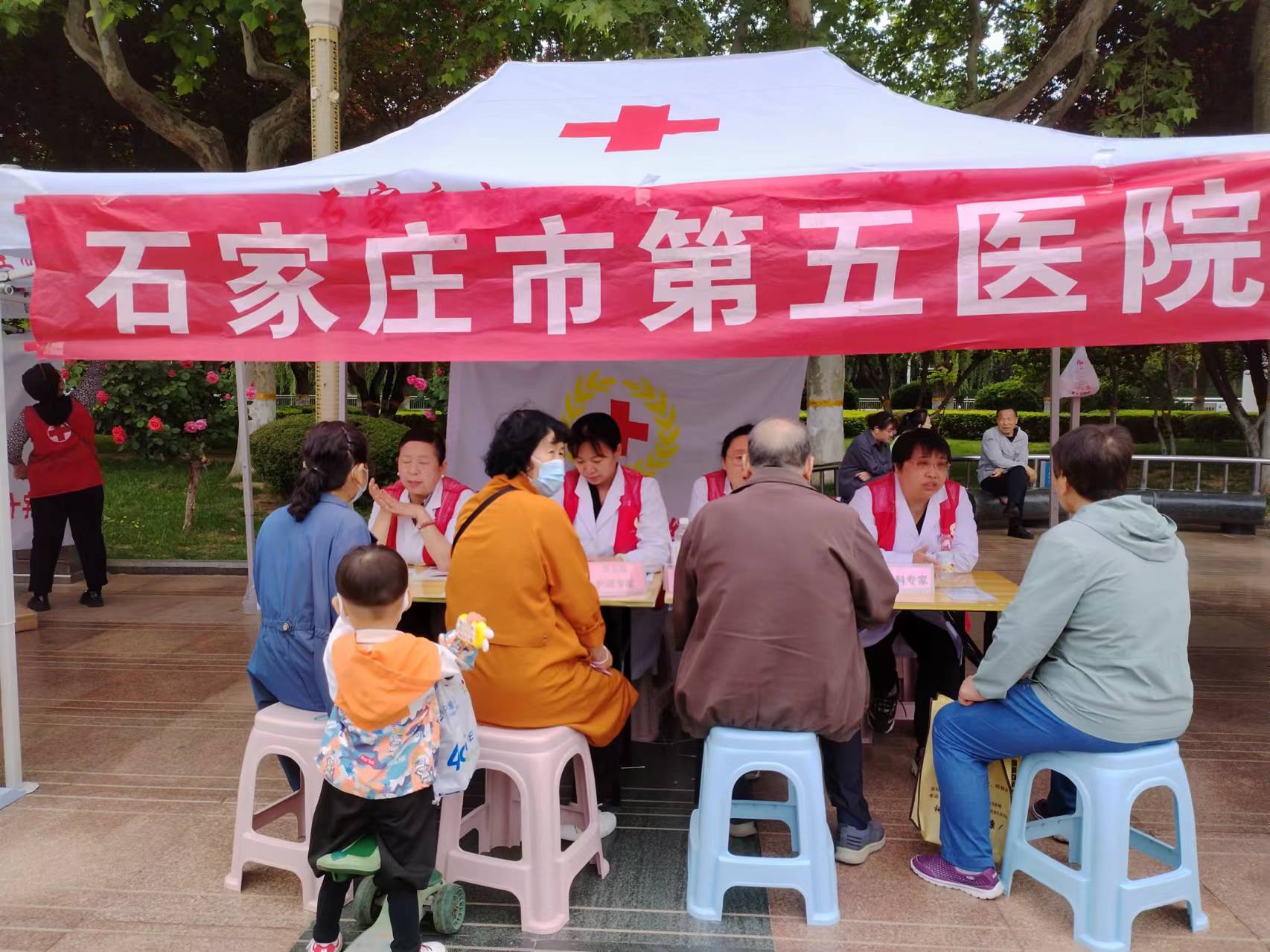 在义诊区,石家庄市红十字会组织16家医疗会员单位积极参与,为市民提供免费测量血压、血糖和心理健康咨询等相关医疗服务,细心解答前来咨询市民的疑惑和问题,并引导市民建立良好健康的生活习惯。