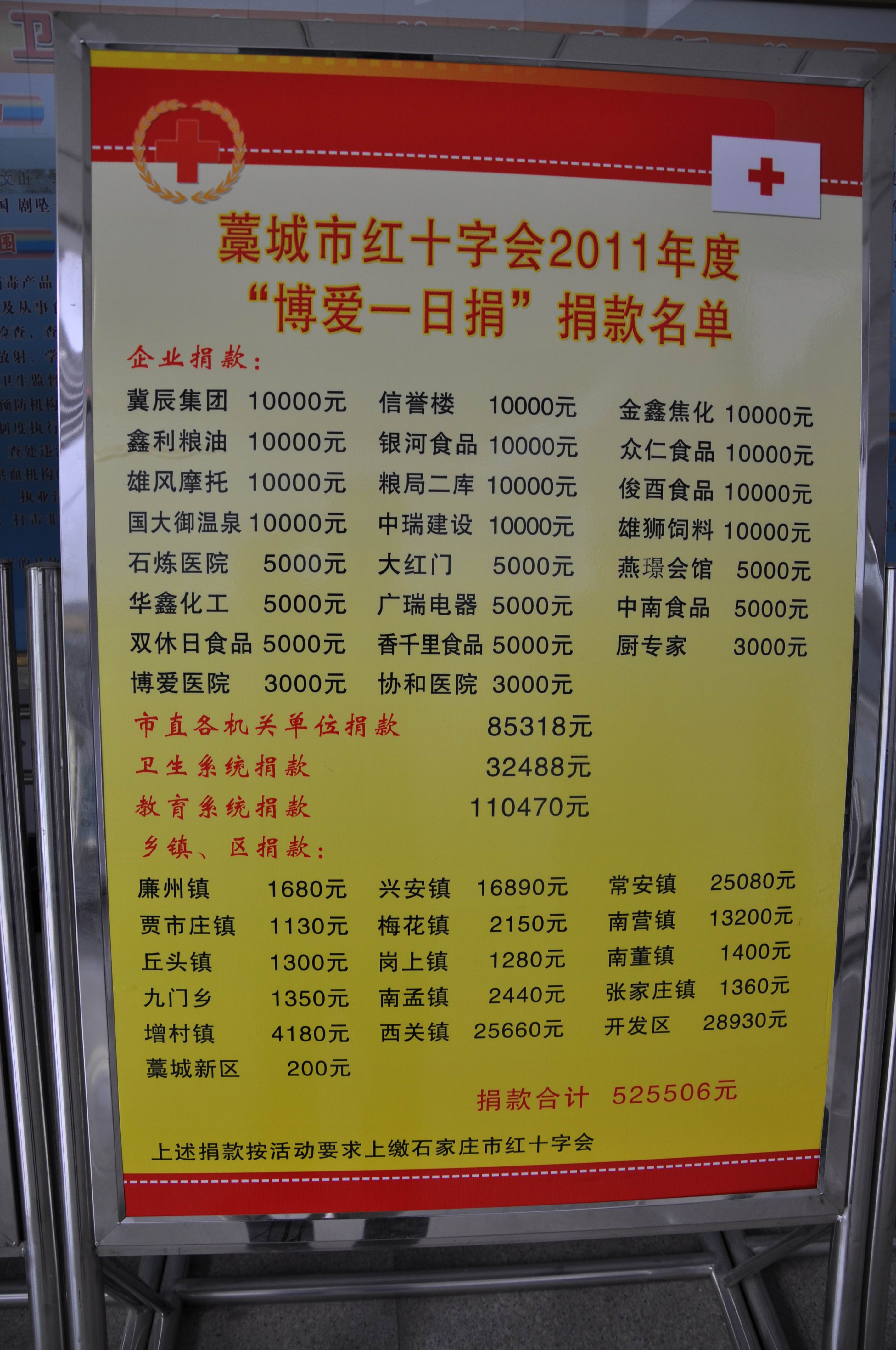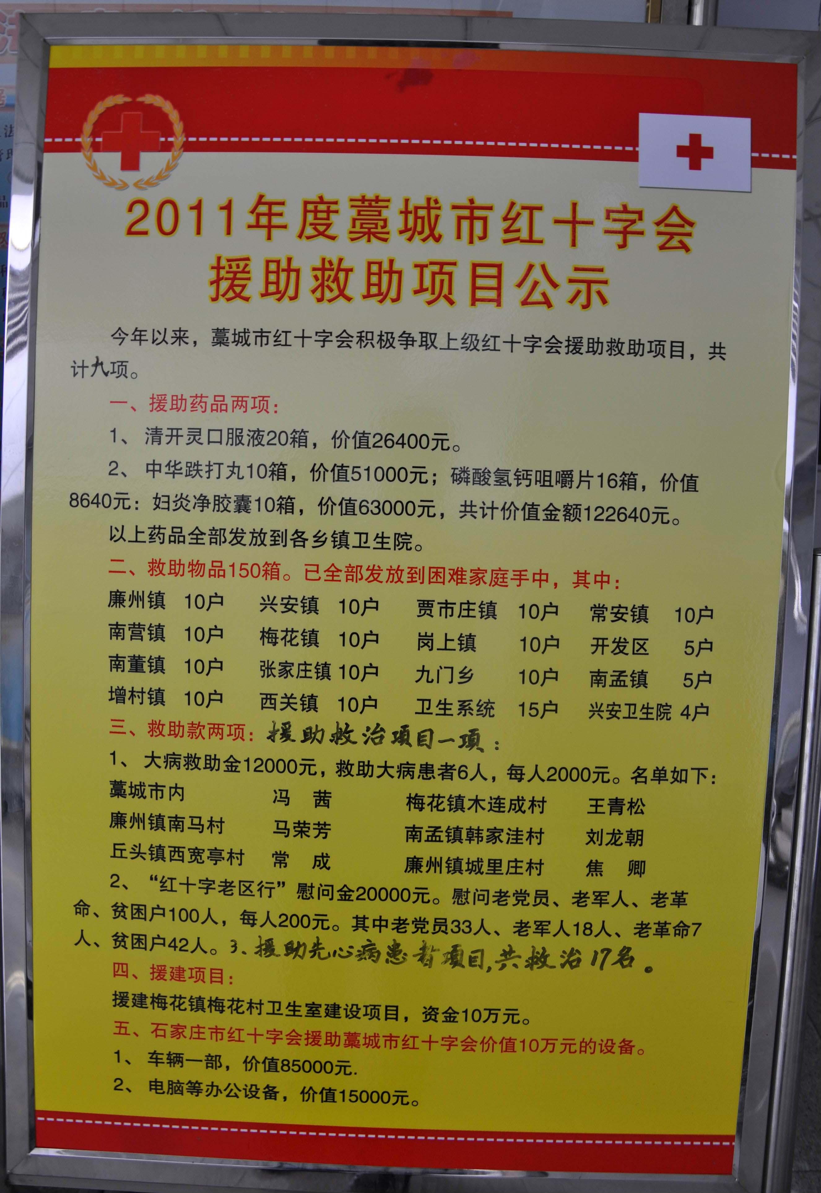 为了让群众了解红十字会捐款和项目、救助支出情况,便于监管。藁城市红十字会及时制作“博爱一日捐”和援助救助项目明细公示栏在卫生局办公楼一楼大厅长期摆放,使捐款单位和群众一目了然,清楚明白,社会各界反映良好。
